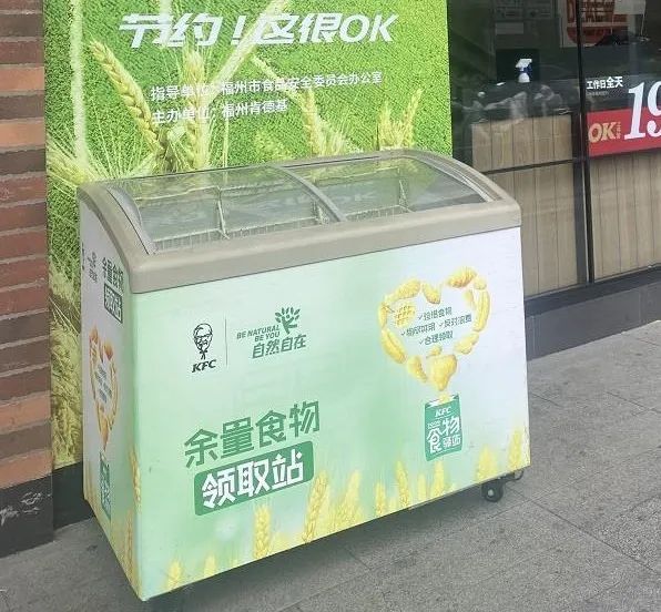 肯德基福州市北二环店设立“余量食物领取站”供有需人群合理拿取。据介绍,肯德基的炸鸡产品销售周期一般只有2小时,如果2小时内未售出,店员就会将这些食物放入冷库冷冻24小时以上,然后放入门口的余量食物领取站,供人自由领取。