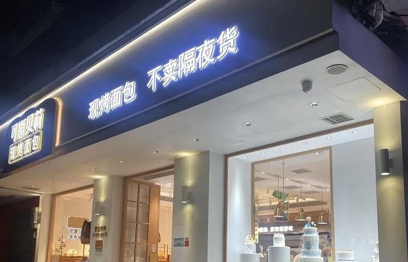记者在可斯贝莉(鼓西店)看到,店门外招牌广告上写着“现烤面包 不卖隔夜货”。