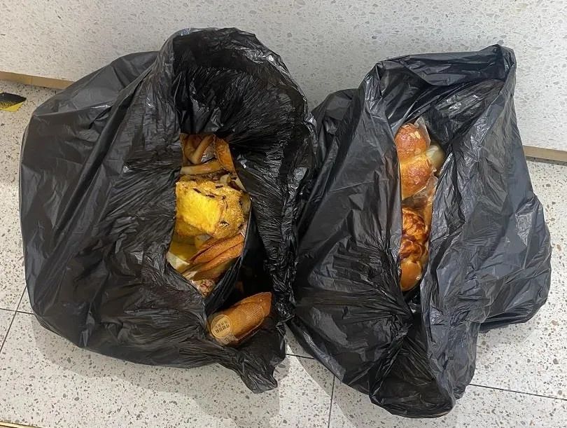 6月8日晚11点9分,可斯贝莉鼓西店将未售完的现烤面包集中收纳到2个垃圾袋中,每袋大约有几十块面包。