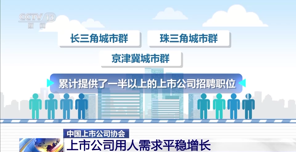 数据还显示,长三角城市群、珠三角城市群、京津冀城市群累计提供了一半以上的上市公司招聘职位。