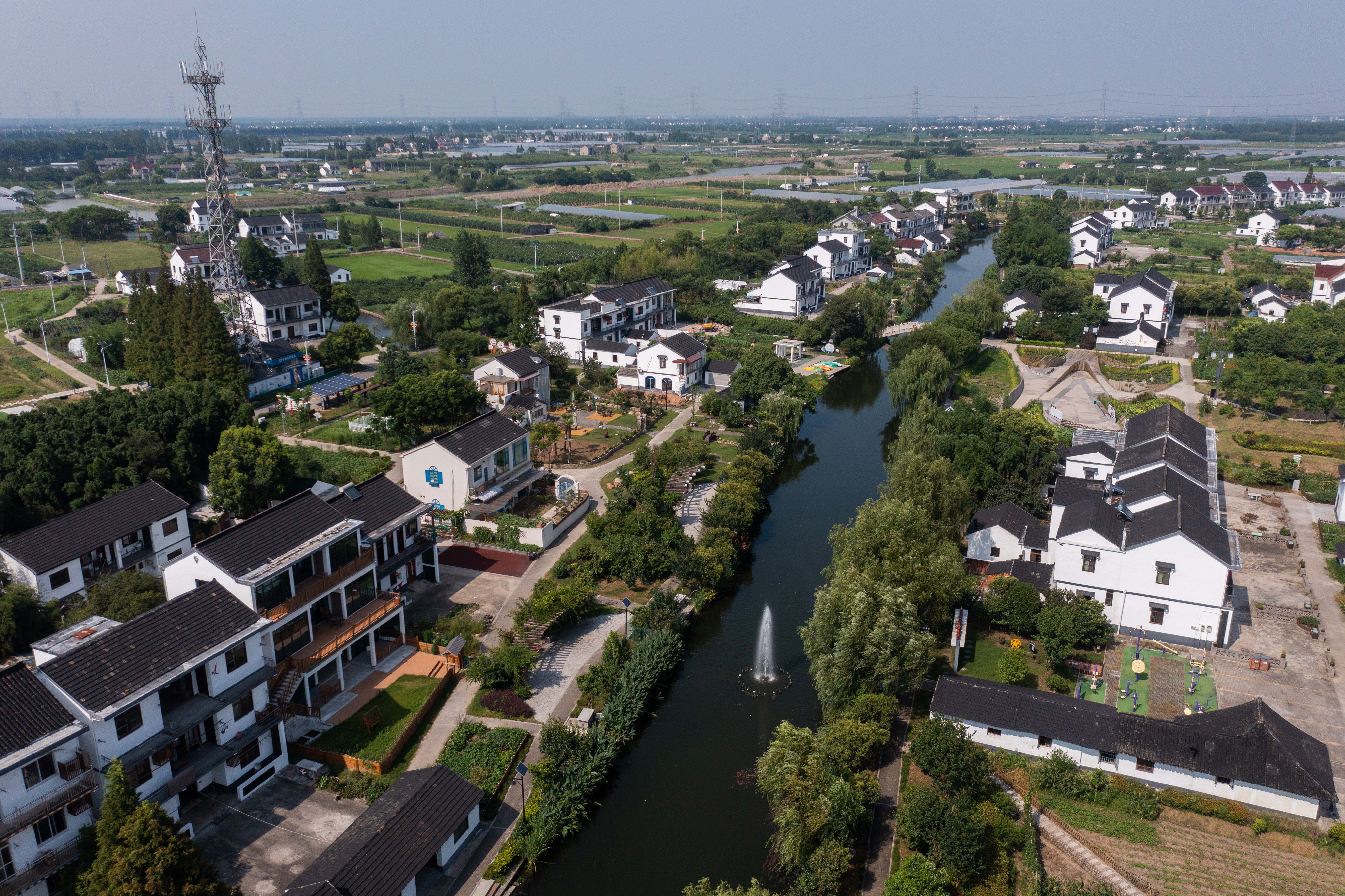 这是2021年7月12日拍摄的浙江省嘉善县姚庄镇横港村(无人机照片)。新华社记者 徐昱 摄