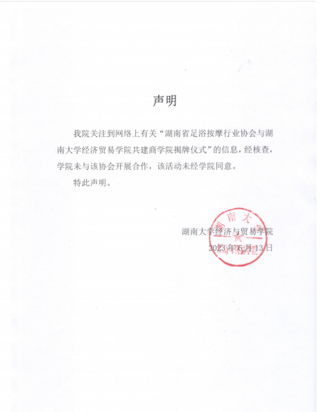 网传足浴按摩行业协会与湖南大学共建商学院,校方回应