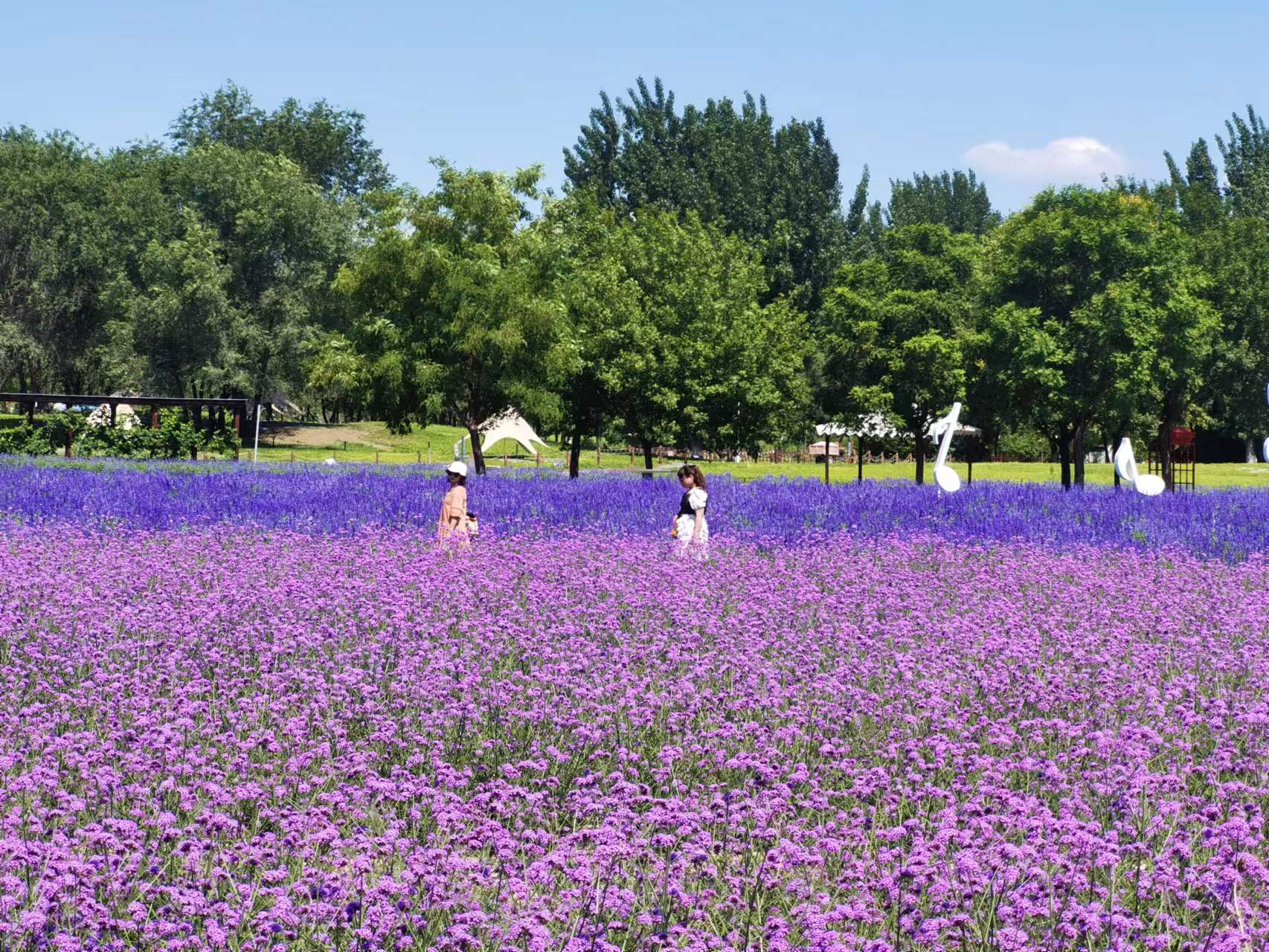 6月13日,丰台区永定河畔的首农·紫谷伊甸园,深浅交替的紫色花海吸引了众多游人前来感受花海风光。逐渐进入盛花期的薰衣草和柳叶马鞭草,绘制出一幅紫色的华章,成为市民赏花打卡好去处。