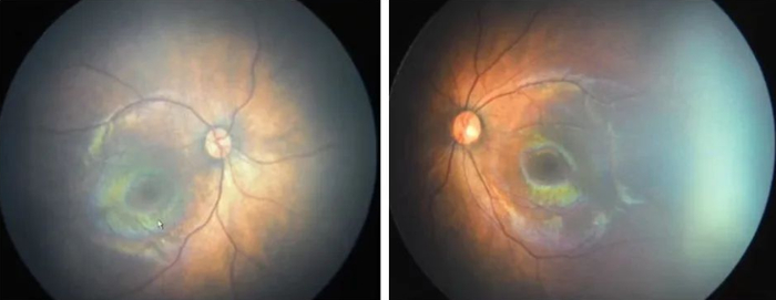 这位婴儿在出生38小时后接受常规新生儿眼病筛查时,医生发现她的右眼眼底长了一个约2mm*1.5mm大小的黄白色肿物,根据经验判断,高度怀疑视网膜母细胞瘤。紧接着,烟台山医院眼科医生将该婴儿的相关病情资料发给上海新华医院专门研究视网膜母细胞瘤的专家,专家基本确定这就是视网膜母细胞瘤。