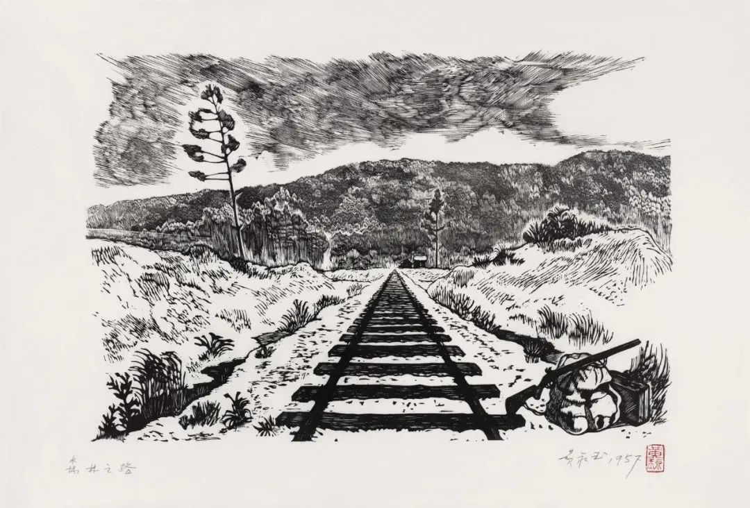 森林之路 27×40cm 1954年 张梅溪儿童文学《在森林中》插图