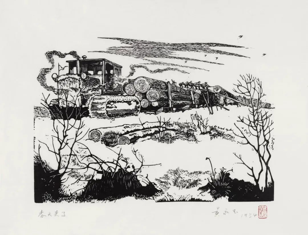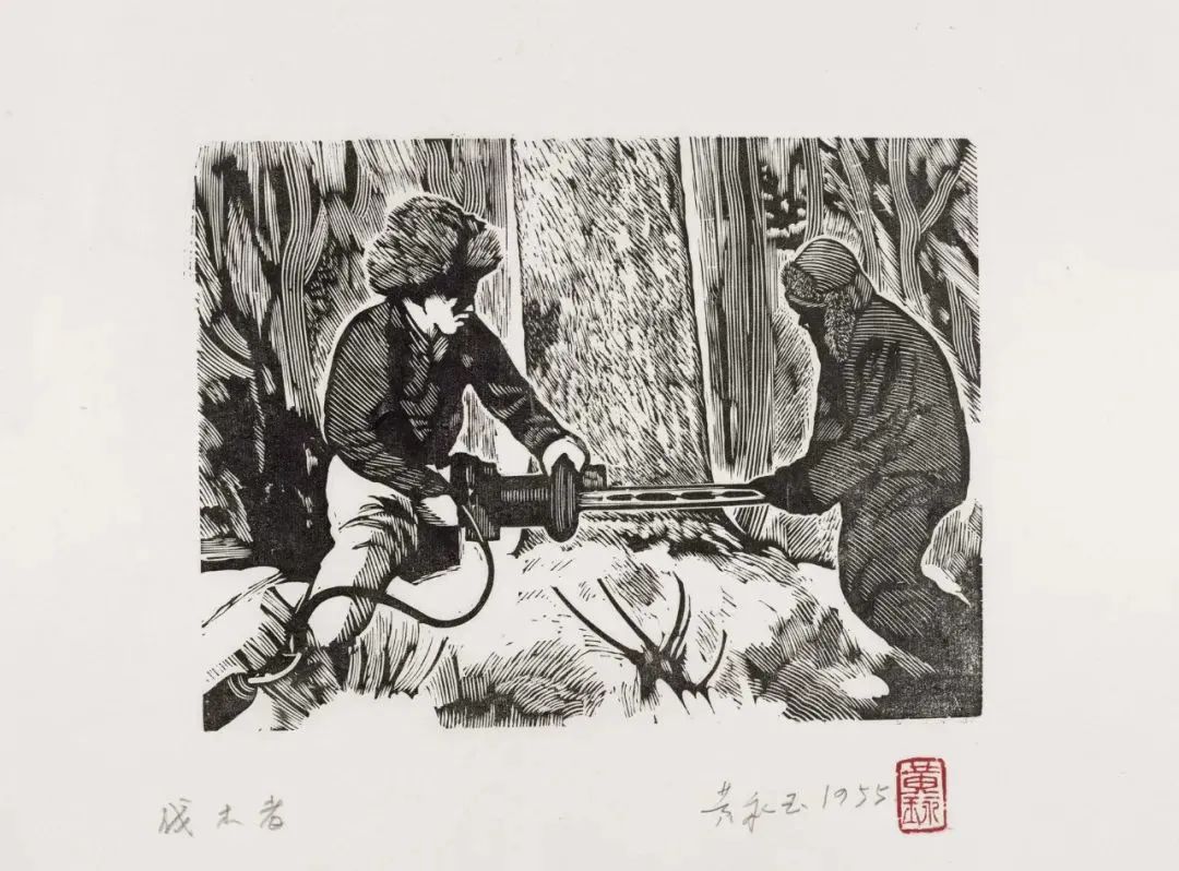 伐木者 15×20cm 1954年 张梅溪儿童文学《在森林中》插图