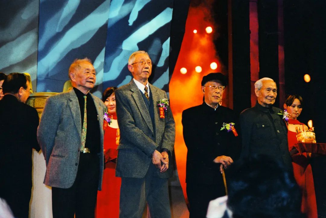 2003年,中国文联、中国美协向老一代美术家颁发“中国美术金彩奖·终身成就奖”(左起:黄永玉、王琦、力群、曾竹韶)