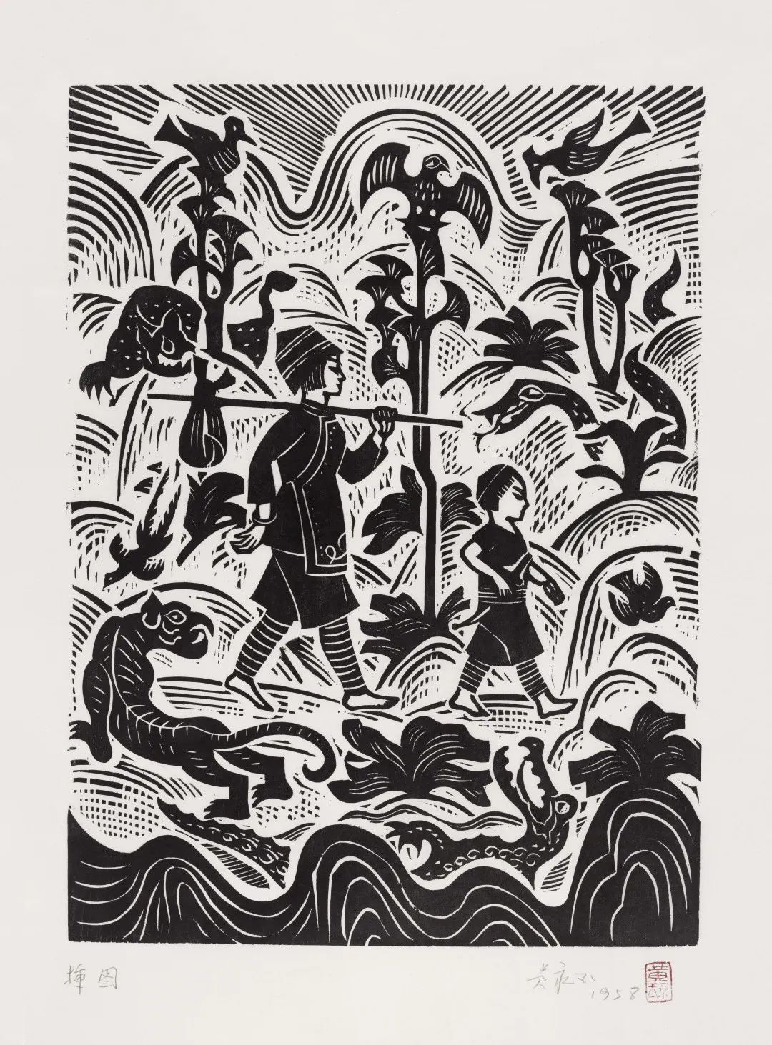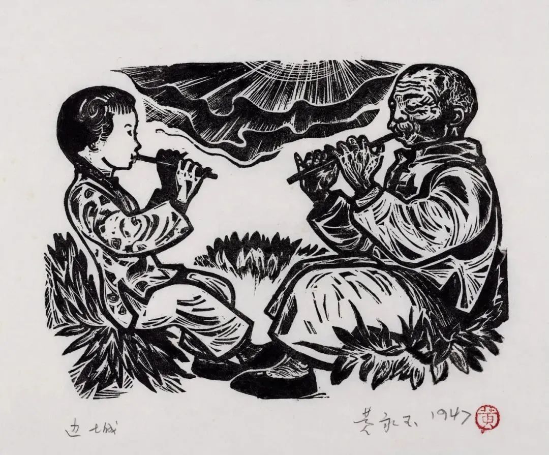 翠翠和爷爷 13.5×18.5cm 1947年 沈从文小说《边城》插图