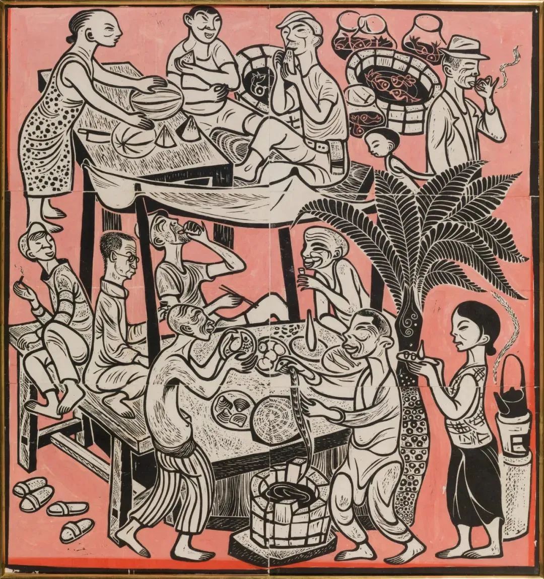 大伙的食堂 1960年 32×27cm 木版套色 中央美术学院美术馆藏