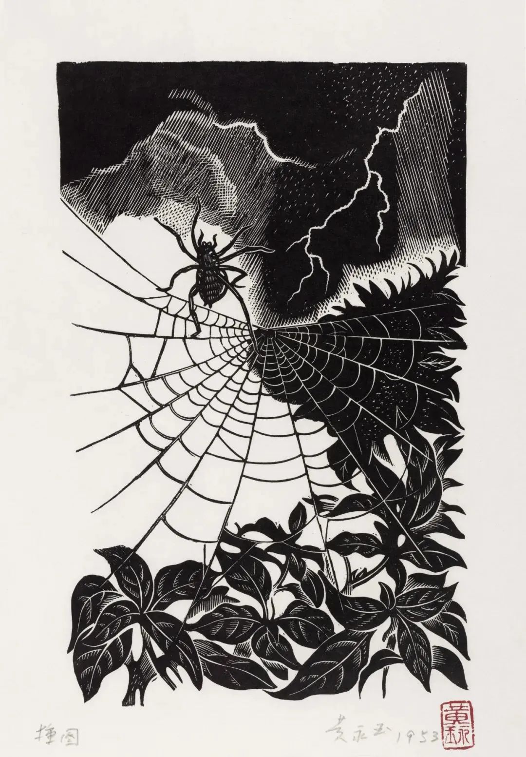 大风雨和蜘蛛 25.5×16cm 1953-1954年 冯雪峰《寓言》插图