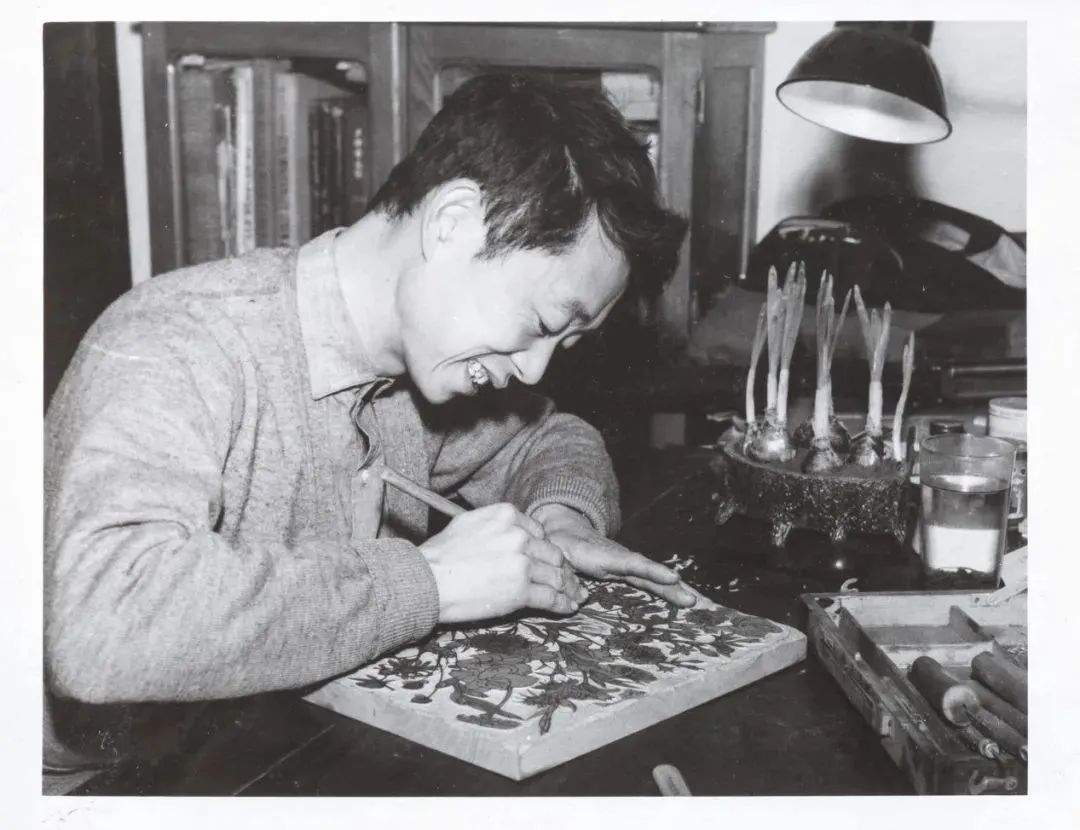 1962年黄永玉在校尉营美院宿舍刻花卉