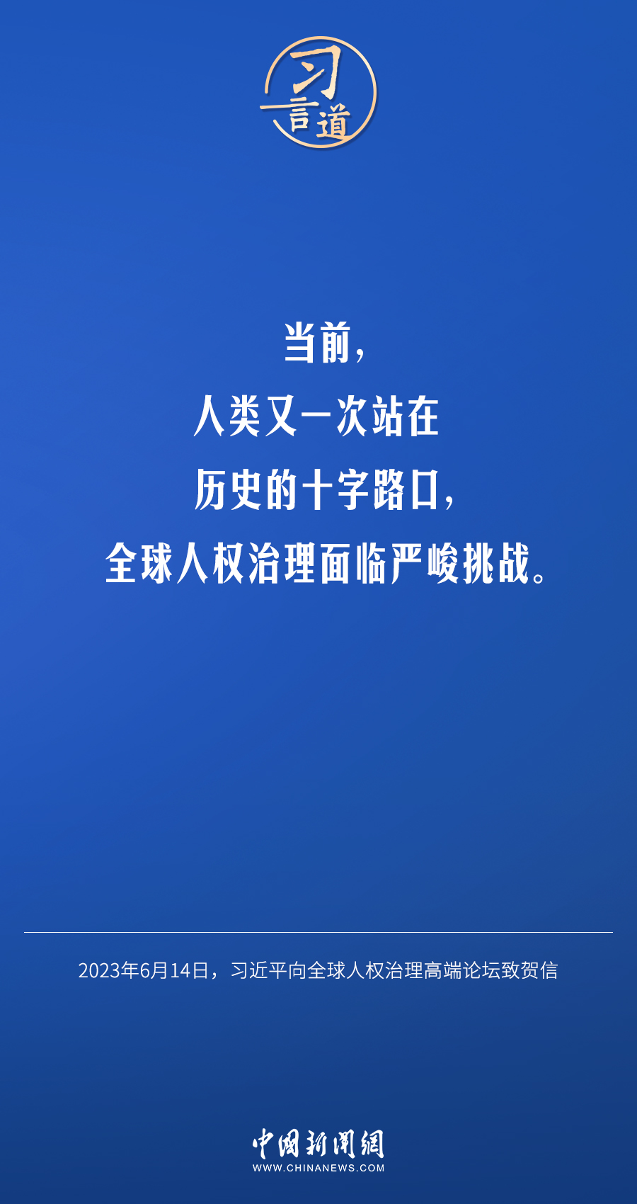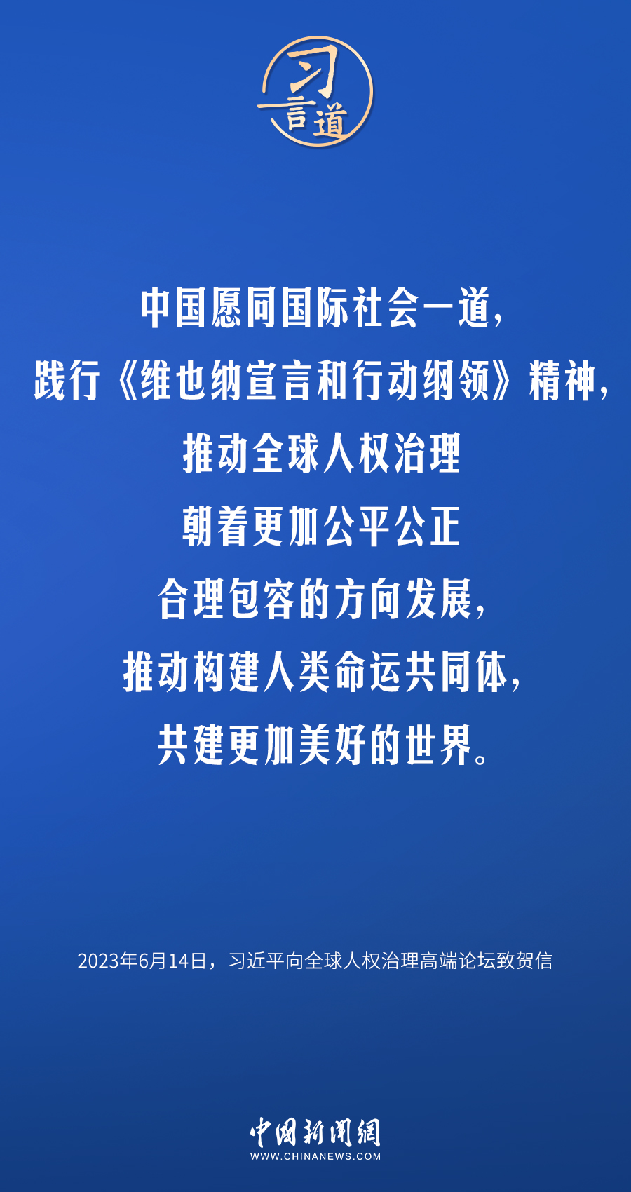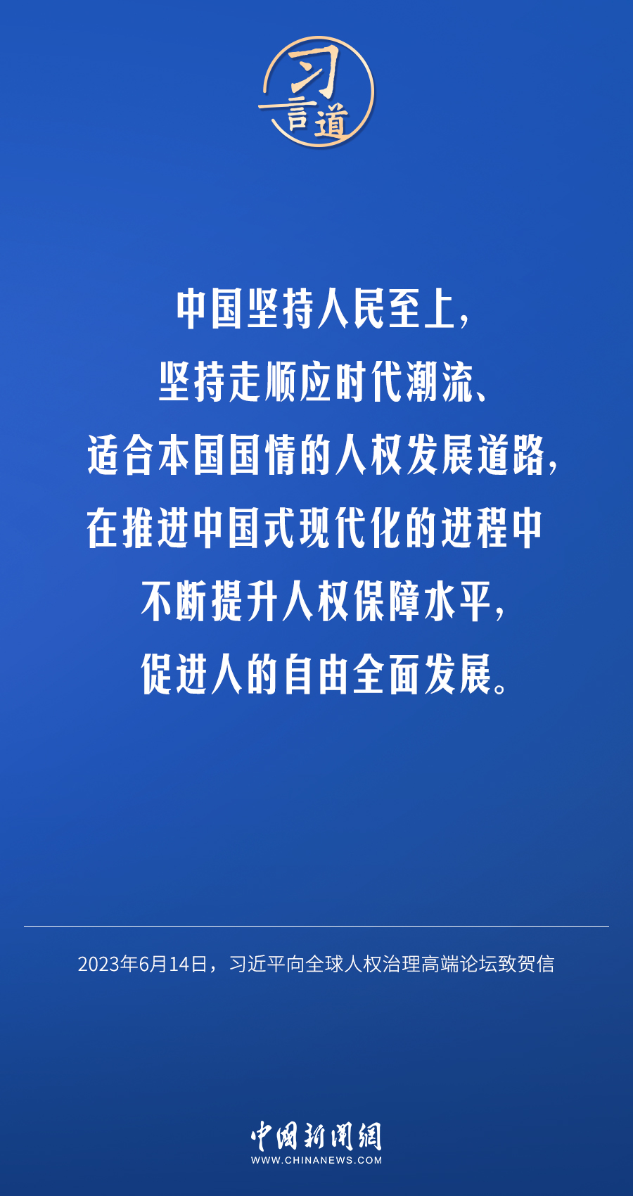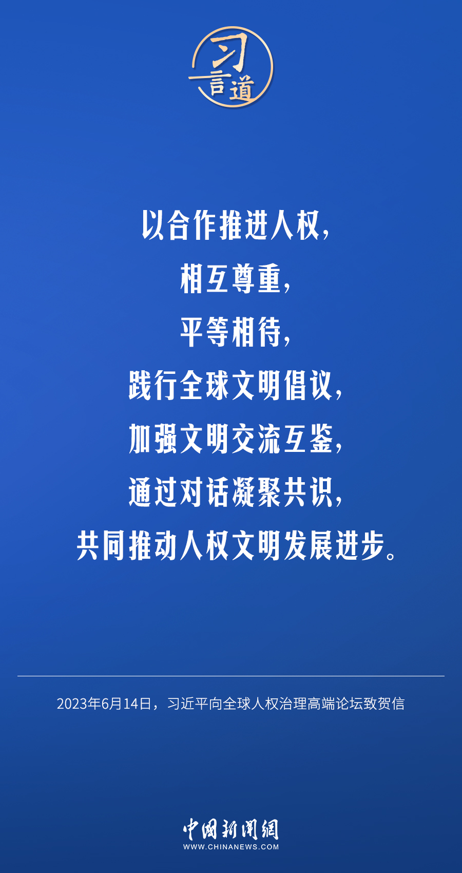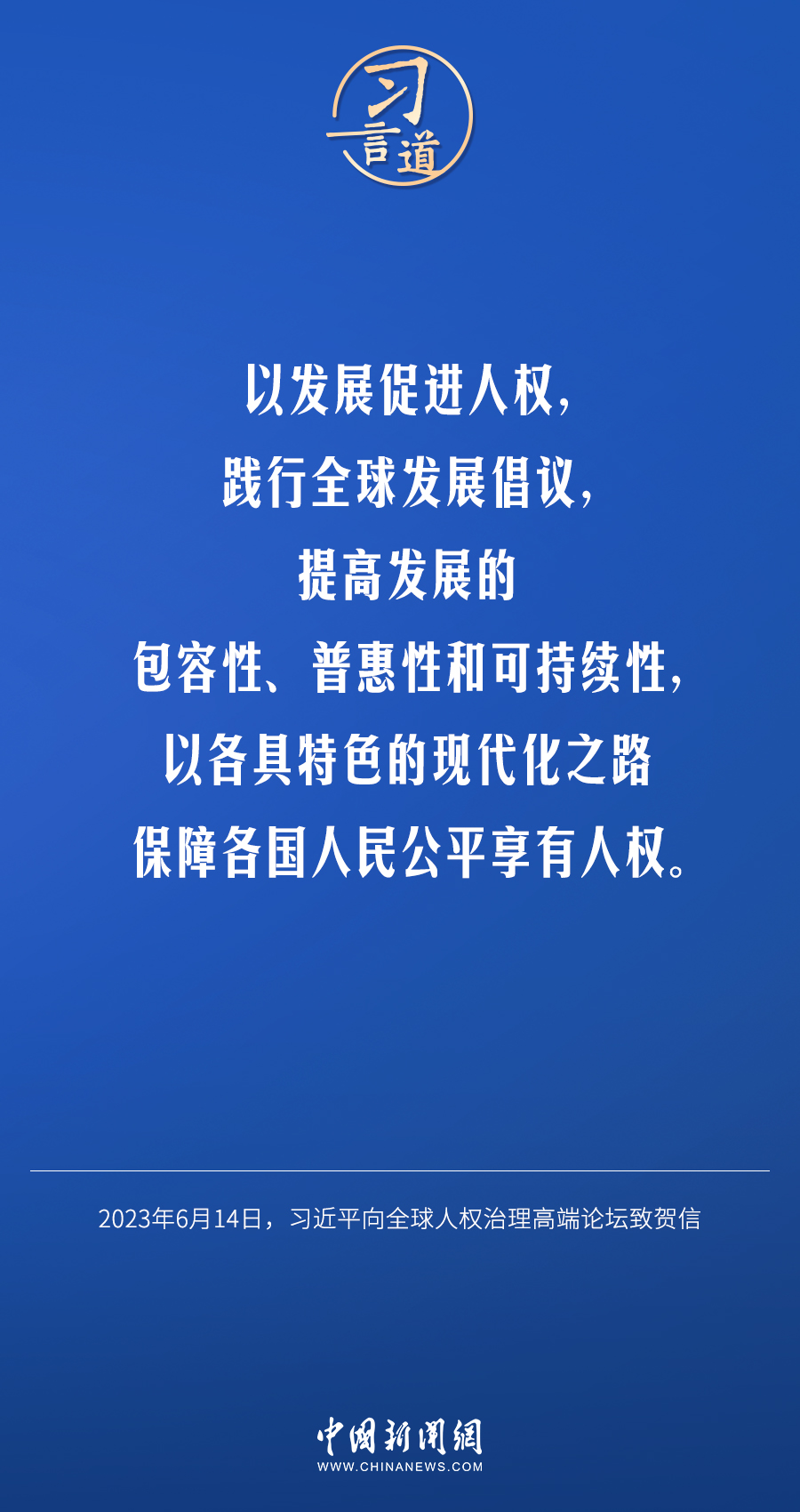6月14日,国家主席习近平向全球人权治理高端论坛致贺信。他指出——