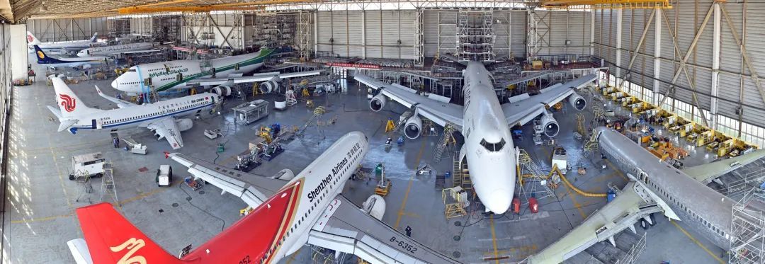 飞机大修工作现场。