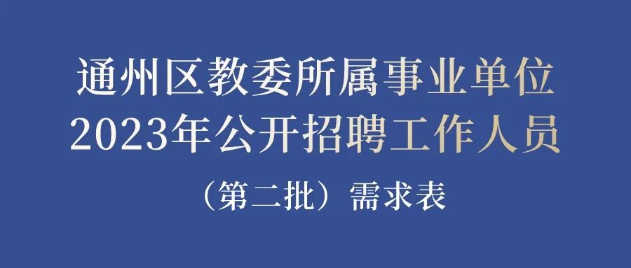 通州区教委所属事业单位2023年第二次面向毕业生公开招聘事业单位工作人员,共168人。报名时间为2023年6月19日9:00至2023年6月21日12:00。想当老师的你,千万不要错过!
