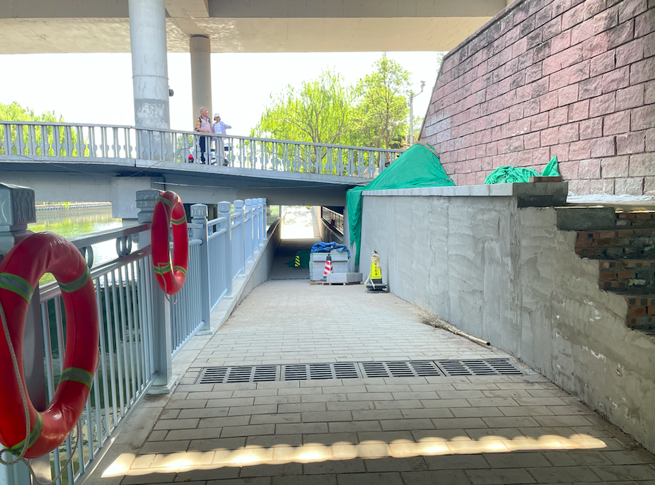 为进一步开放共享滨水空间,解决滨河步道通行不畅的问题,北京市城市河湖管理处在南护城河景泰桥、玉蜓桥桥下采用下凹人行步道的方式,打通两处断点,实现滨河步道连通,满足人们通行需求。