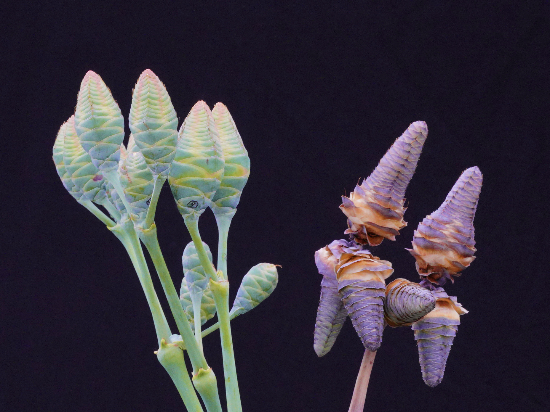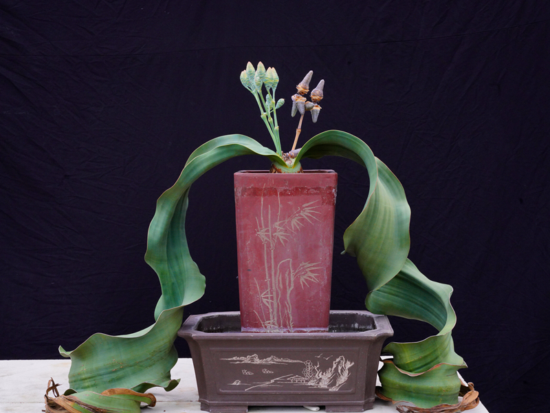 栽培存活不易,授粉更不是件容易事儿。千岁兰是雌雄异株植物,需要找到“配偶”。2013年,植物园引进的千岁兰雌株第一次开花了。最初那几年,成雅京和同事也忙着给它找到合适的雄株。但问遍了国内的学者,大家连见开花的千岁兰都没见过。