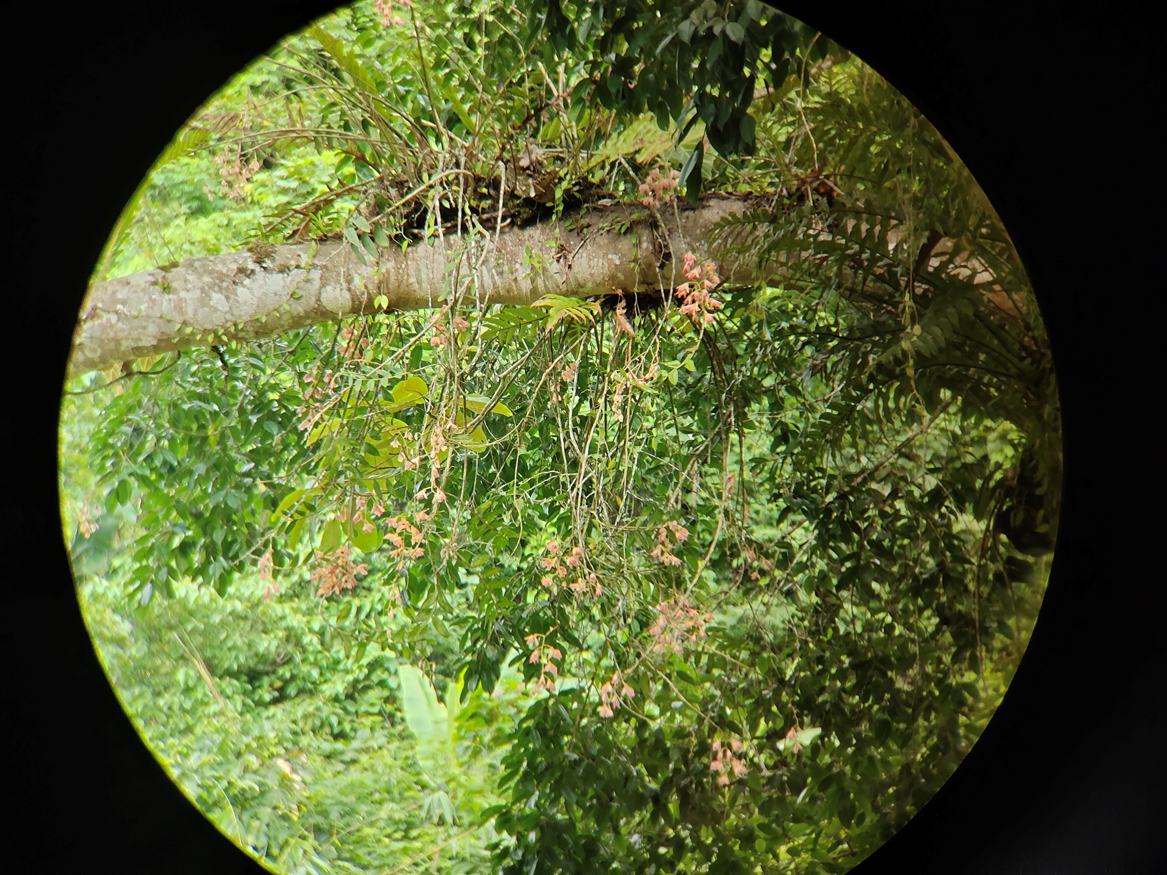大概是眷顾我们的执着,终于在一次野外调查中,在云南省林草局和德宏州林草局专家的帮助下,王苗苗透过望远镜,看到一抹金灿灿的亮色出现在一棵四五十米的大树上,那就是杓唇石斛!