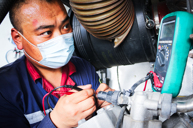 几分钟工夫,豆大的汗珠就成串往下掉,任建峰工作服更是紧紧地“贴”在了身上。“有时候,要检修的部位比较靠里,从发动机外部也无法触及,只能从后机舱狭小的夹缝‘钻进去’,基本上就是上半身趴在发动机上,下半身卡在机舱内。为了尽快排除故障恢复运力,这点困难不算啥。”任建峰一边用万用表测量,一边擦去汗水。