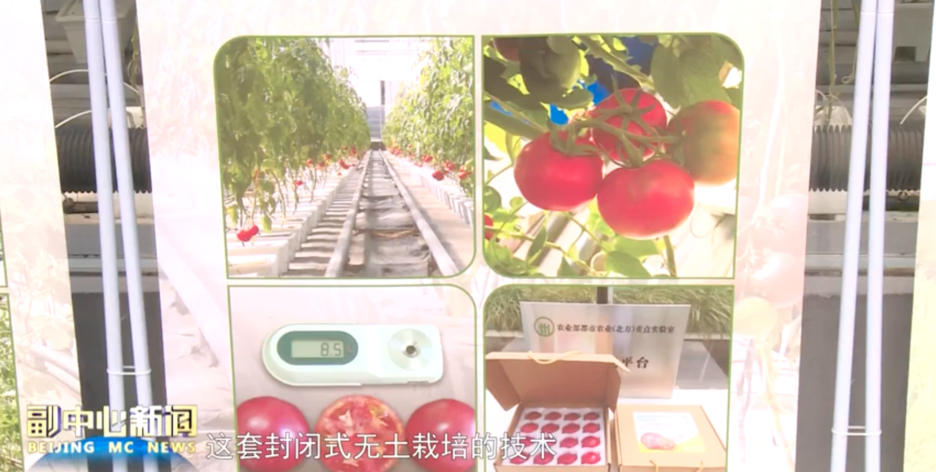在展示基地的智慧温室内,两米有余的番茄秧苗上挂满了成熟的番茄。据了解,温室中采用的封闭式无机机制槽培栽培系统,是本次展示会的亮点技术。通过搭载限根栽培技术,建立了产量与质量兼顾的高质量番茄生产模式,生产的番茄不仅糖度可以稳定达到8%-10%,并且实现了产量的稳步提升。