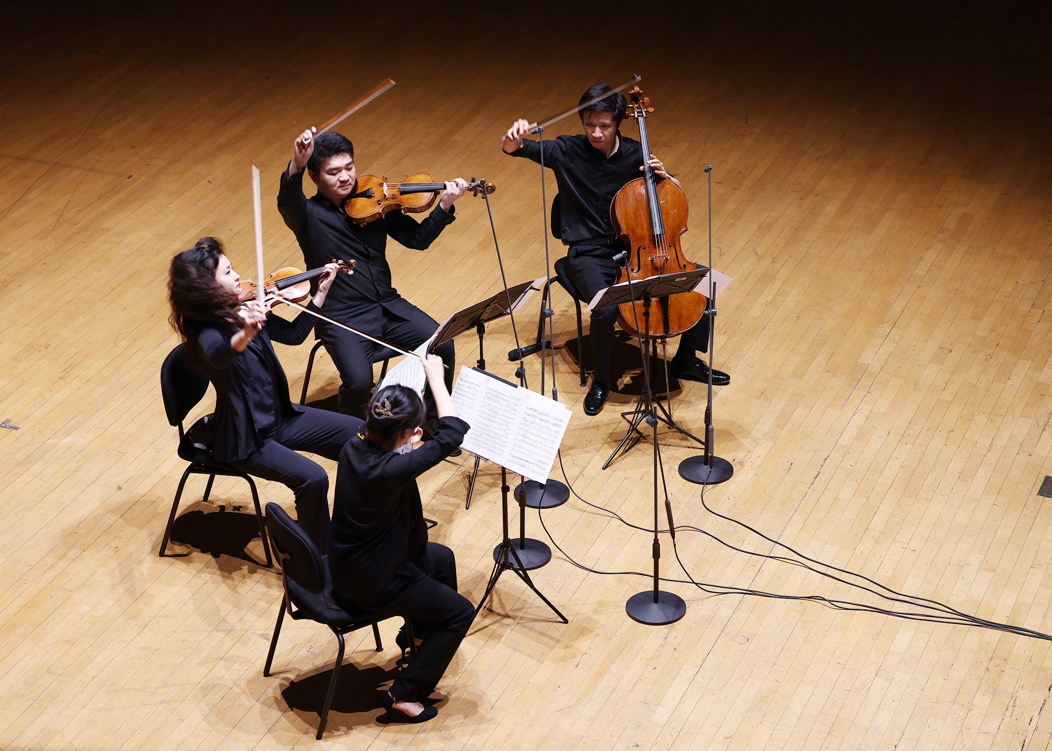 舒伯特《c小调第十二号弦乐四重奏》奏响,惶恐不安与踌躇满志的情绪交织撕扯,在琥珀四重奏演奏家们的琴弦上奔流。这首作品创作于1820年,舒伯特当时没有完成整曲,仅写下一个乐章,却因独树一帜的感情特征而成为经典。