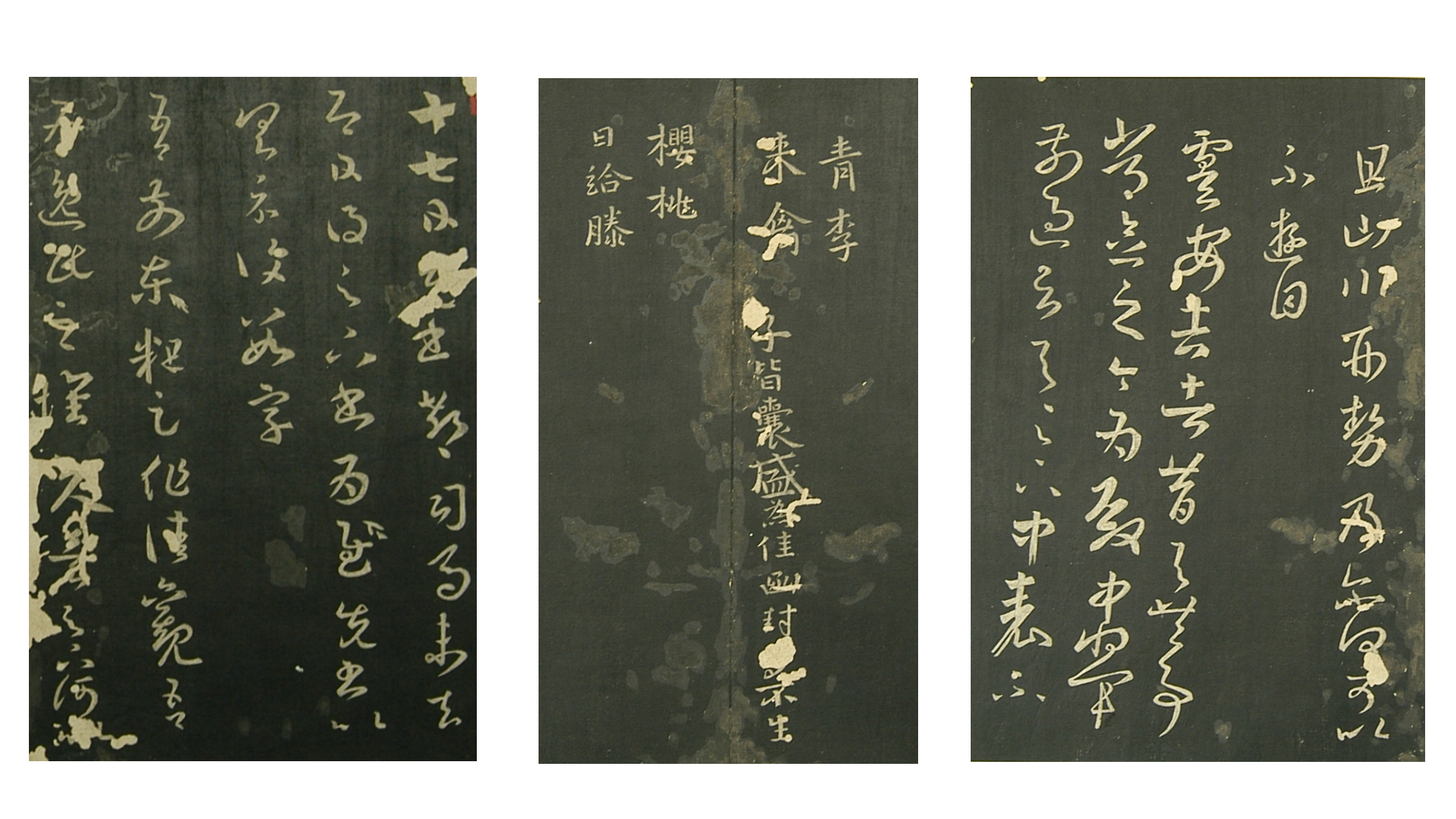 △从左至右依次是《郗司马帖》《青李来禽帖》《虞安吉帖》(局部)