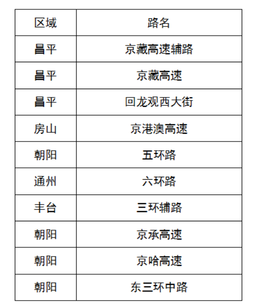 结合近三年数据,北京交管部门公布端午节假期交通事故多发路段。分别为: