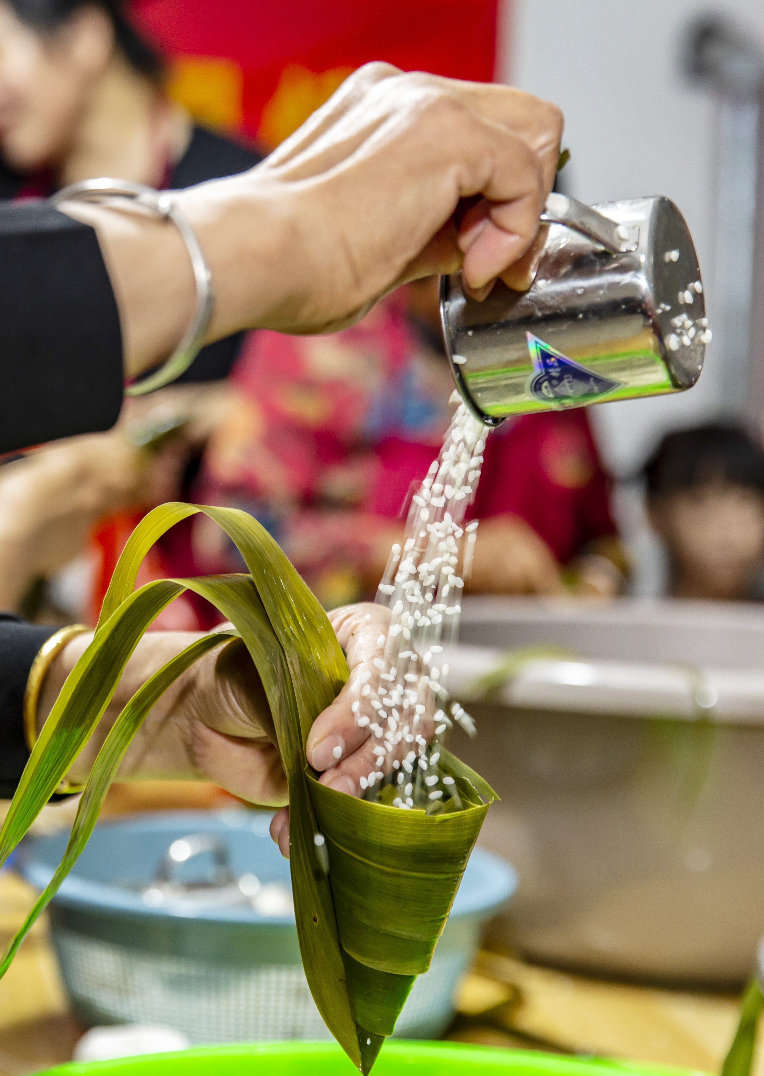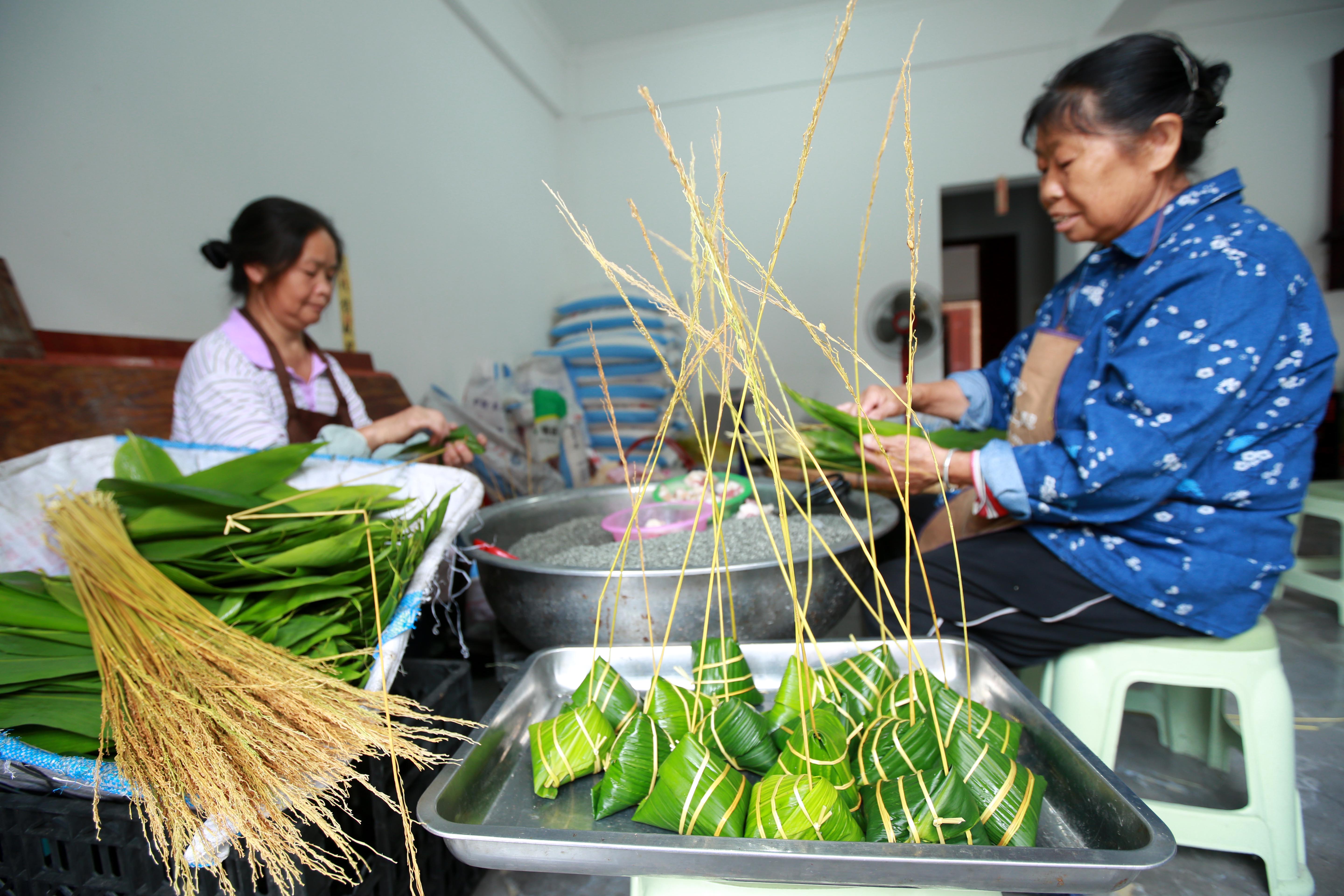 6月18日,江苏省海安经济技术开发区七星湖社区居民在包粽子。新华社发(向中林 摄)