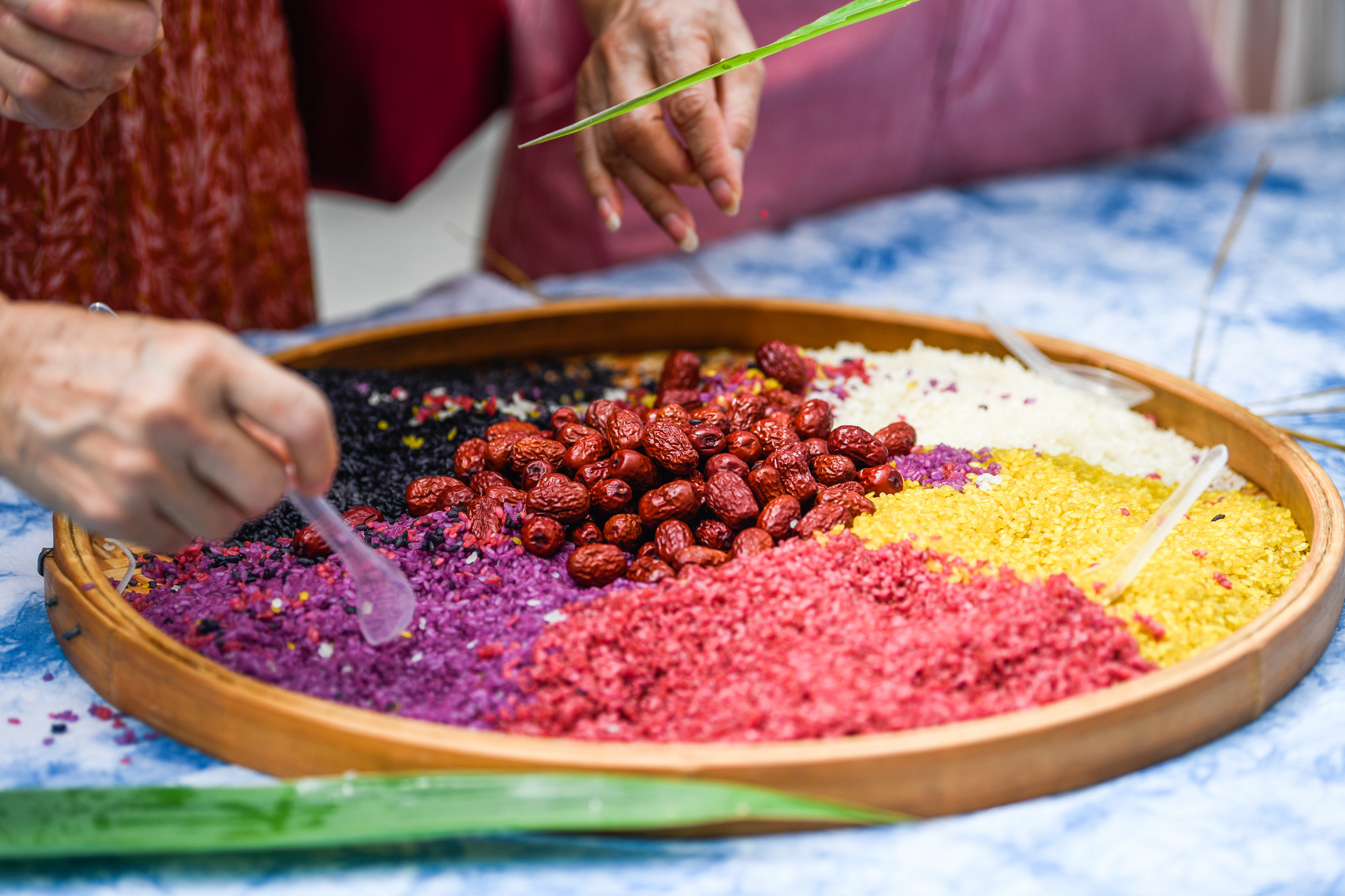 宋人欧阳修的《渔家傲》描绘出端午佳节的热闹景象,“五色新丝缠角粽”,包粽子是我国重要的端午习俗。人们包粽子、迎佳节,神州处处飘粽香。