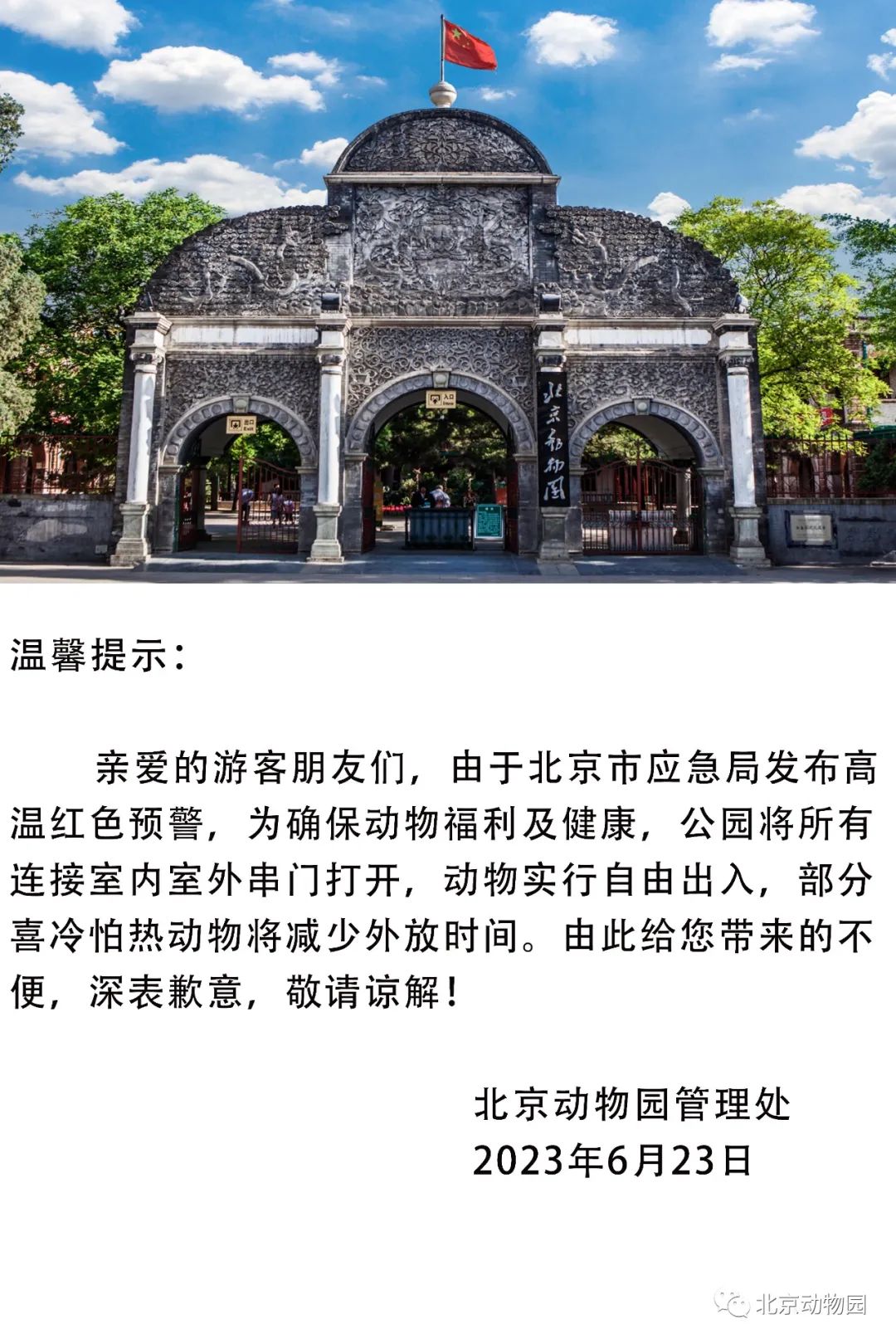 北京动物园:部分喜冷怕热动物将减少外放时间
