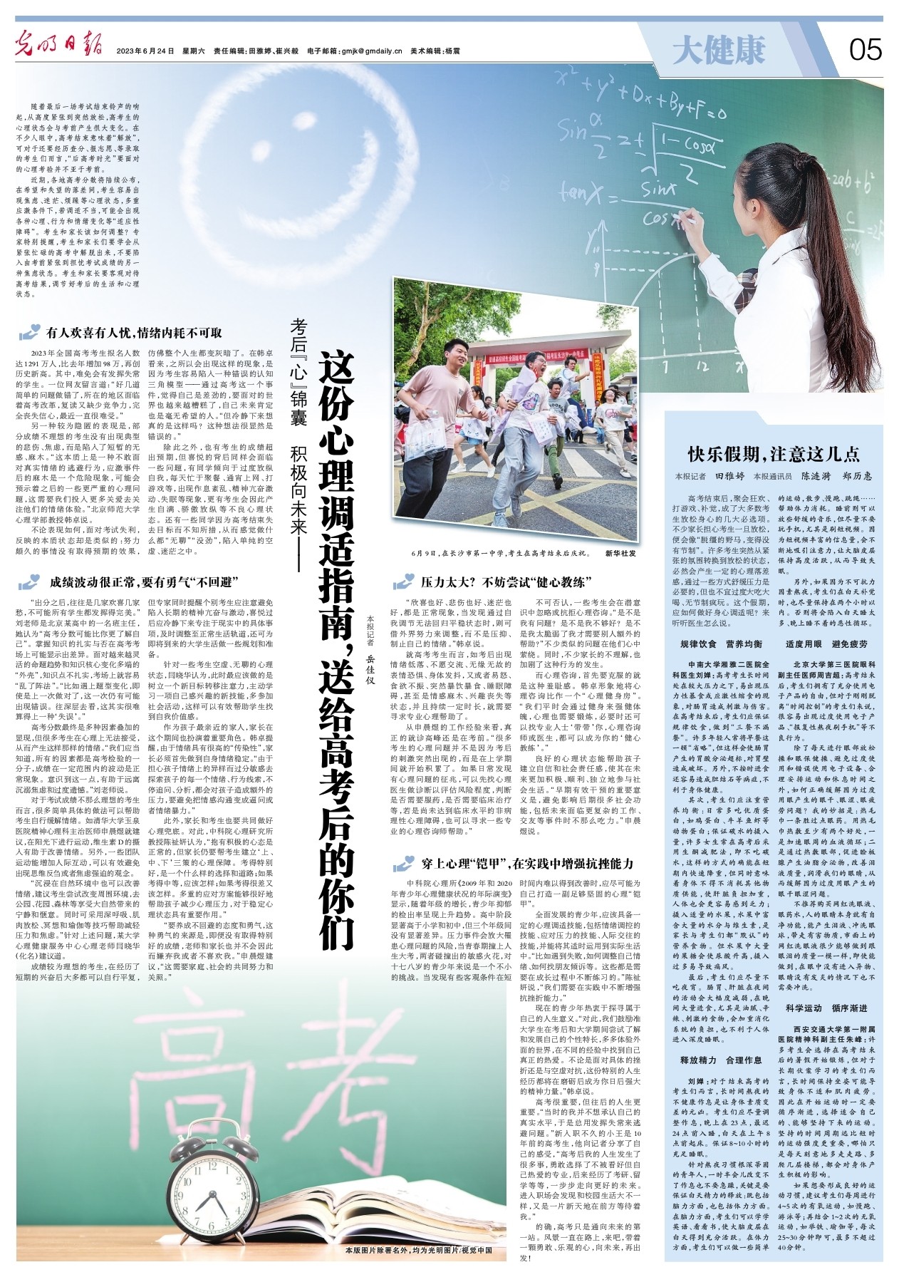 随着最后一场考试结束铃声的响起,从高度紧张到突然放松,高考生的心理状态会与考前产生很大变化。在不少人眼中,高考结束意味着“解放”,可对于还要经历查分、报志愿、等录取的考生们而言,“后高考时光”要面对的心理考验并不亚于考前。