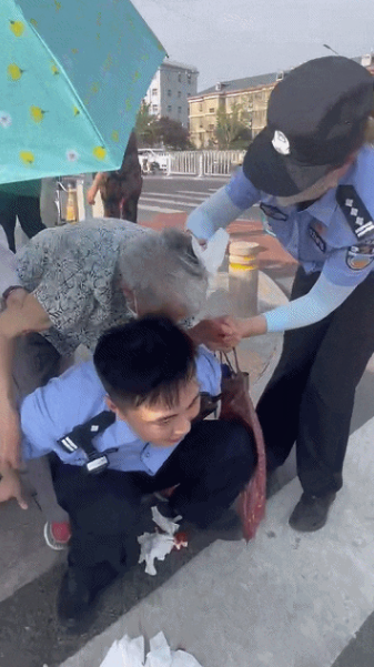6月23日,一位老人在天坛公园内中暑突然晕倒在地摔伤了头,正在执勤的天坛派出所民警及时救助,让老人脱离了危险。