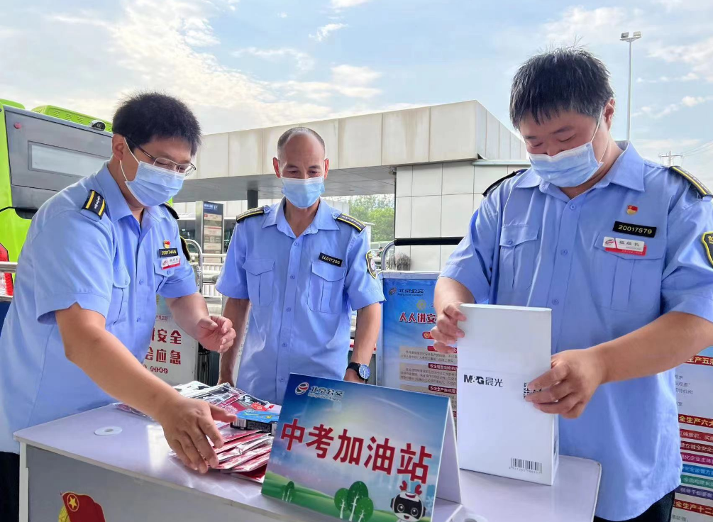 6月24日、25日两天,671路四惠枢纽站设立中考“加油站”,为学生提供矿泉水、防暑药品、签字笔、铅笔、橡皮等考试用具。公交职工还向携带书包的考生提供寄存服务,考生可以将物品暂时寄存在站台,考试结束后回来领取。