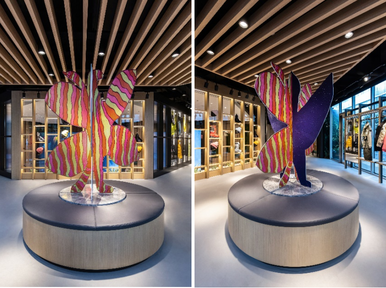 一直以来,Canada Goose加拿大鹅始终坚持贯彻品牌理念—— HUMANATURE,源于自然,归于自然,品牌的可持续发展战略及倡议行动都以该理念为立足核心。其中,以艺术缔造文化正是这一理念的重要一环,品牌对艺术和文化始终保有着不懈追求。将店铺作为别具特色的展览空间,在全球各地的Canada Goose加拿大鹅精品店内展示富有特色的艺术家杰作。北京三里屯太古里旗舰店亦呈现风格多样的作品,各地艺术家以别具特色的创作手法和表现形式,向消费者娓娓讲述来自中国和加拿大北境的动人故事。