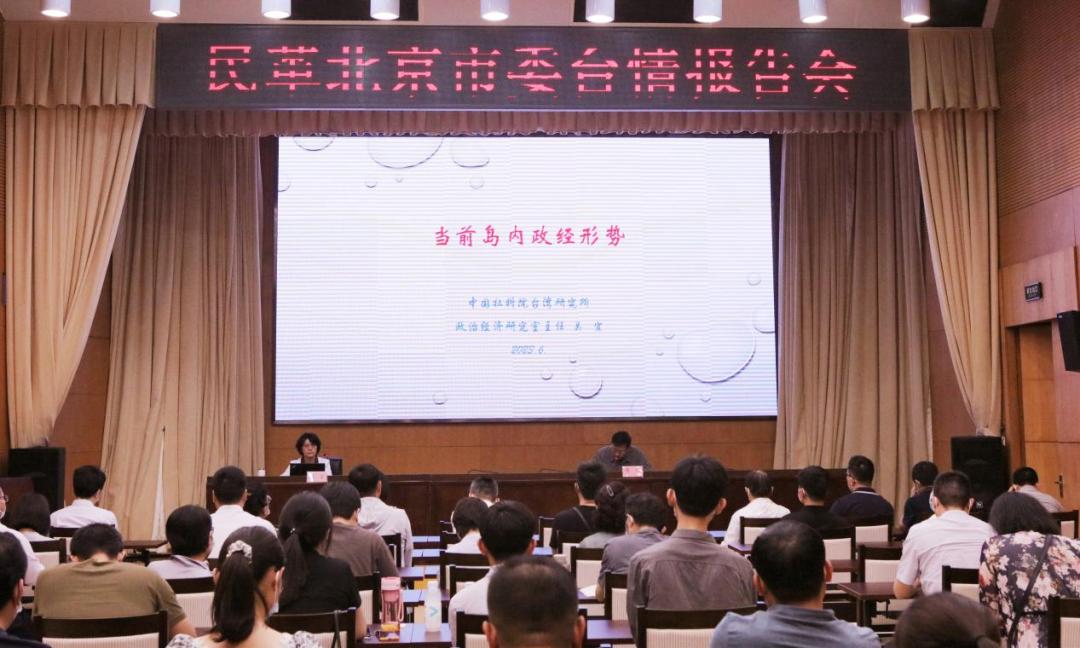 日前,民革北京市委举办台情报告会,邀请中国社会科学院台湾研究所政经研究室主任、研究员吴宜,作“岛内最新经济形势和局势”的辅导报告。民革北京市委祖统委委员、北京中山文化交流协会理事、各区级组织祖统委主任、祖统工作骨干及机关干部等100余人参加活动。民革北京市委副主委傅川主持报告会。
