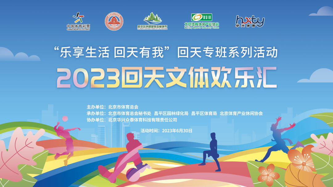 为进一步丰富加大科学健身指导供给,创新全民健身理念推广模式和机制,提升广大回天居民从全民健身活动中切切实实地得到获得感、愉悦感以及幸福感。由北京市体育总会主办,北京市体育总会秘书处和北京市体育产业休闲协会承办的“乐享生活 回天有我”回天专班系列活动2023回天文体欢乐汇活动将于6月30日8:30在东小口城市休闲公园幸福广场举办。
