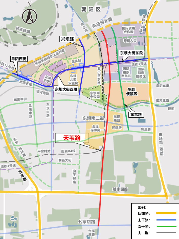 近日,北京市发改委批复天苇路(亮马河北路—幺家店路)道路工程建设项目建议书(代可行性研究报告),进一步完善东坝地区路网结构,构建交通路网主骨架。