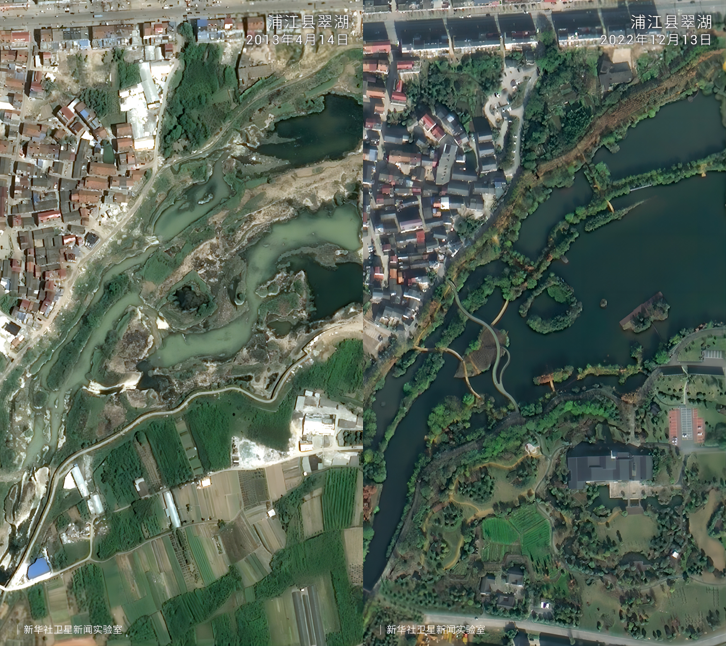 一组组卫星对比图见证了岁月流转中的乡村巨变。放眼浙江广阔大地,这场跨越20年的美丽接力正焕发新的生机。