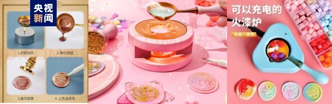 火漆印章是当下深受青少年欢迎的一款DIY产品,在市场上作为儿童“玩具”进行推广销售。目前火漆印章产品主要分为普通火漆印章和可食用火漆印章。普通火漆印章主要包括印章头、蜡烛、彩色火漆蜡粒、融蜡勺等,材质一般以塑料、金属、蜡为主。可食用火漆印章是将普通火漆印章中的彩色火漆蜡粒换成糖果,将糖融化后用印章按压形成各种造型的糖果。