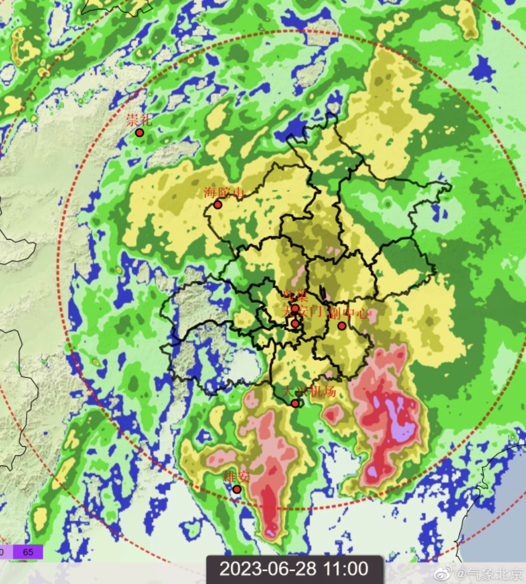 刚刚,北京市气象台发布今天6时至11时降水量(毫米):全市平均7,城区平均(朝,海,丰,石,东,西)6.4,西南(门,房)16.2,西北(延,昌)6.4,东南(通,大)5.9,东北(密,顺,平,怀)1.2;城区最大丰台长辛店17.2,全市最大门头沟柏峪32.5,最大小时降水强度门头沟柏峪28.2毫米/小时(28日7时-8时)。