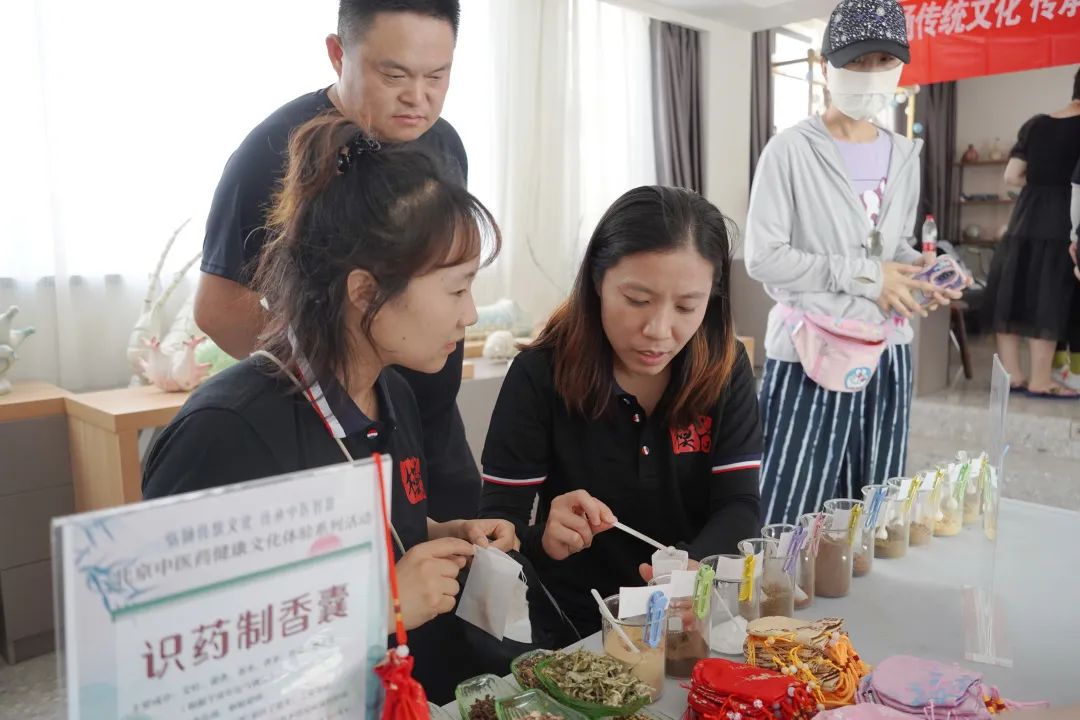 在首期中医药文化体验活动中,模式口居民和游客共同参与了中医药知识互动问答、中医药健康文化素养调查,通过制作艾草挂件、非遗中药香珠和识药制香囊等灵活多样的互动体验项目,增强了大家对中医药理念与文化的认知,让大家感受到中医药对健康生活的积极影响。