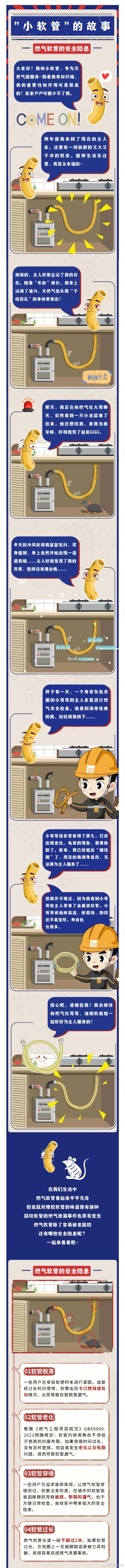 动物咬噬软管,软管脱落,软管老化破损……据不完全统计,软管问题引发的燃气事故占比较高。小编提醒大家:如果你家还在使用橡胶软管,那必须尽快进行更换,因为国家标准明确软管的使用年限不应低于燃具的判废年限。而橡胶软管的使用期限较短,很容易皲裂、老化,造成极大风险,需及时联系专业人员进行维修更换。