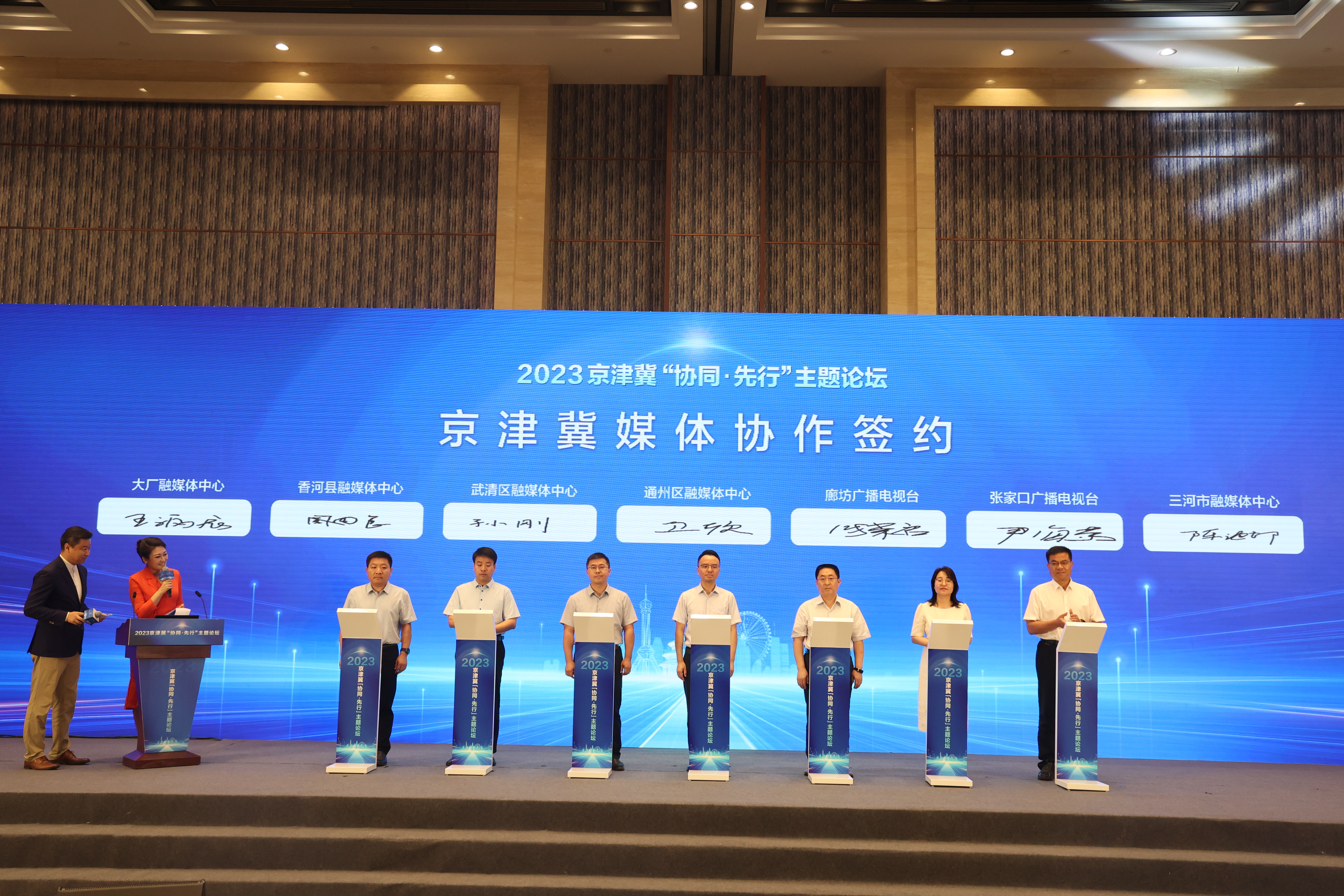 活动现场,通州区融媒体中心与天津市武清区融媒体中心、河北省张家口广播电视台、河北省廊坊广播电视台、河北省香河县融媒体中心、河北省大厂融媒体中心、河北省三河市融媒体中心进行了战略宣传合作签约,共同助力京津冀协同发展,将在内容策划、平台共享等领域进行创新性探索,为跨区域媒体融合积累经验,形成示范。