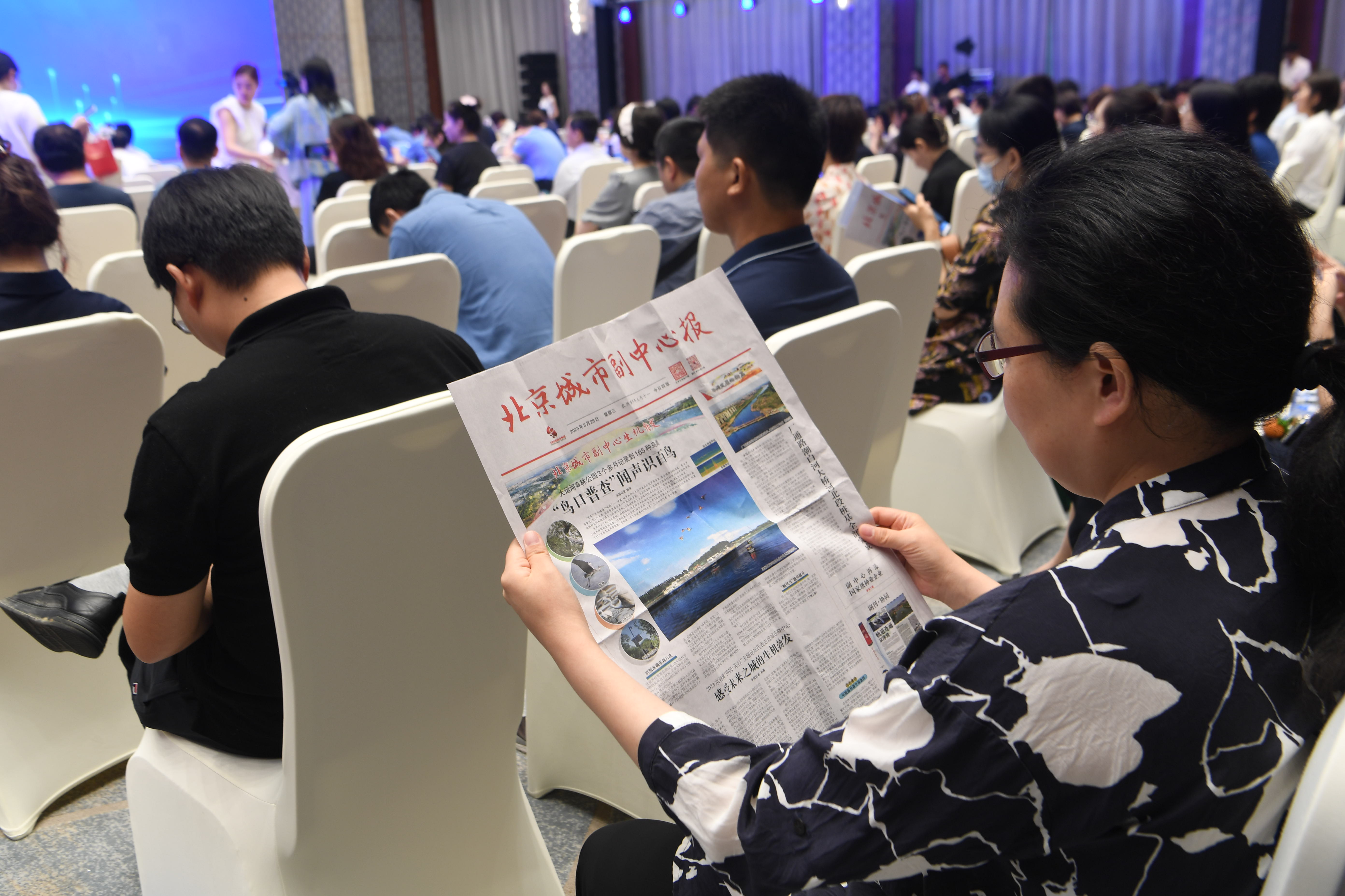 与会嘉宾翻阅《北京城市副中心报》。 摄影 党维婷