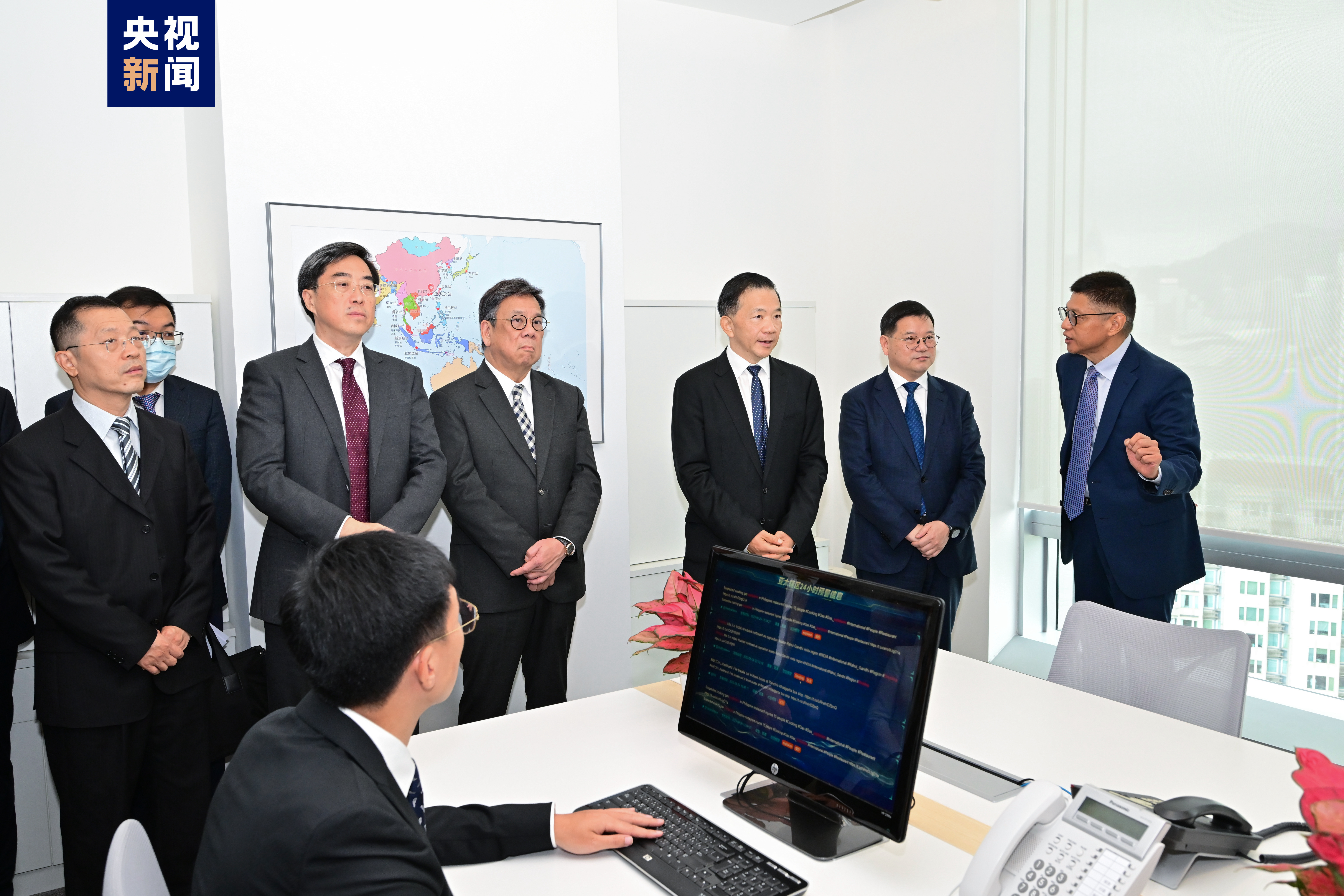 启用仪式后,慎海雄和各界人士先后来到亚太总站新闻值班室、多功能实景演播区和融媒体演播室等,了解人工智能在新闻监测、文稿处理及自动视频合成等方面的探索和成果,并与正在日本福岛进行采访报道的东京站记者视频连线对话,了解工作情况。