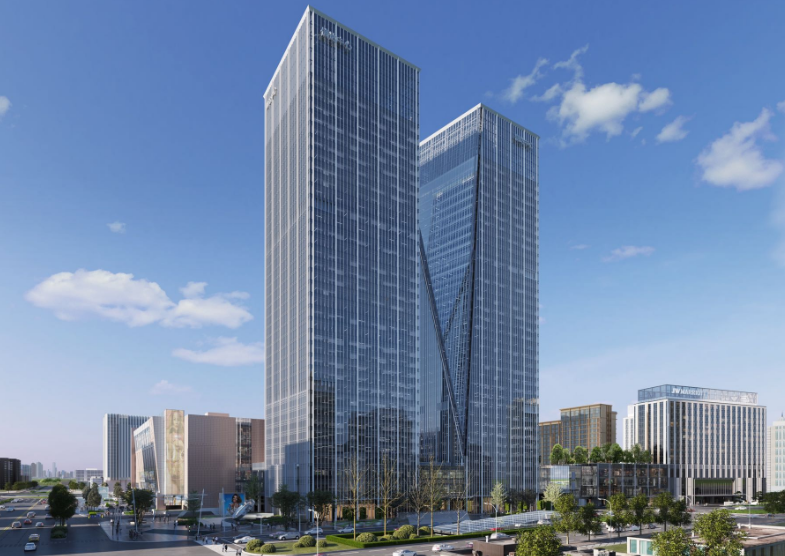 据了解,该商务综合体包括双塔写字楼、住宅和酒店等主体建筑,总建筑规模为59.08万平方米,包括酒店业态约4.8万平方米、商业业态约15.3万平方米、写字楼业态约13.8万平方米。目前,项目已通过竣工验收,部分企业将于7月入驻进行内部装修,商业部分计划在2024年开业。