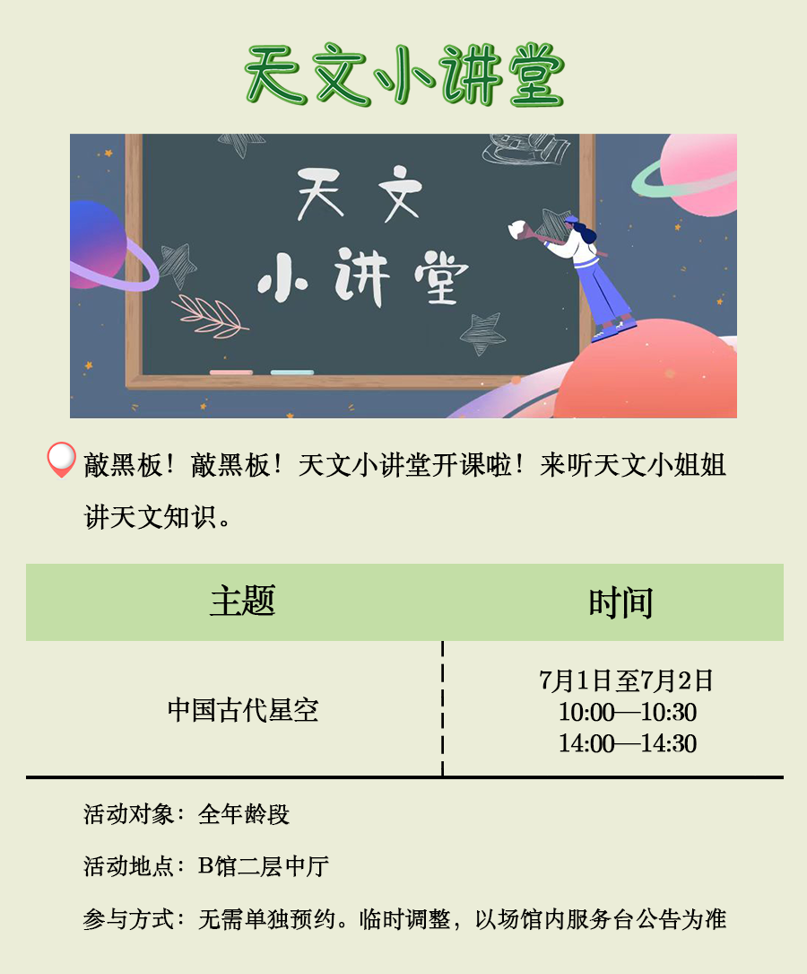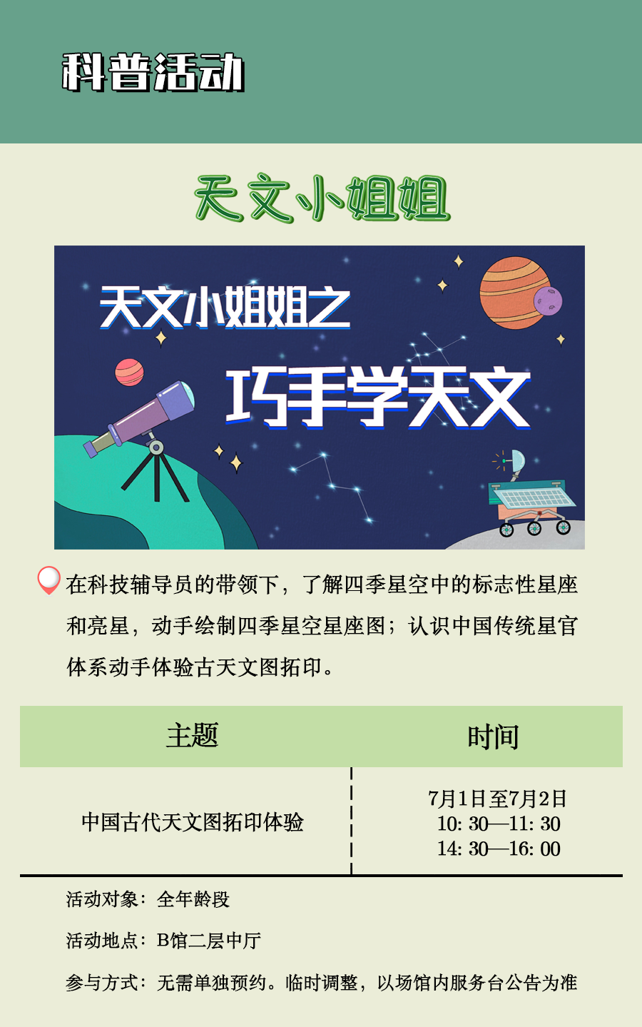 参与方式:活动当日展厅一层咨询台领取预约卡,每场活动限20人,约满即止。
