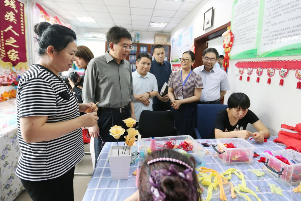 图为北京市残联党组书记、理事长陆晓光(左三)一行在丰台区和义街道温馨家园调研 袁友平/摄