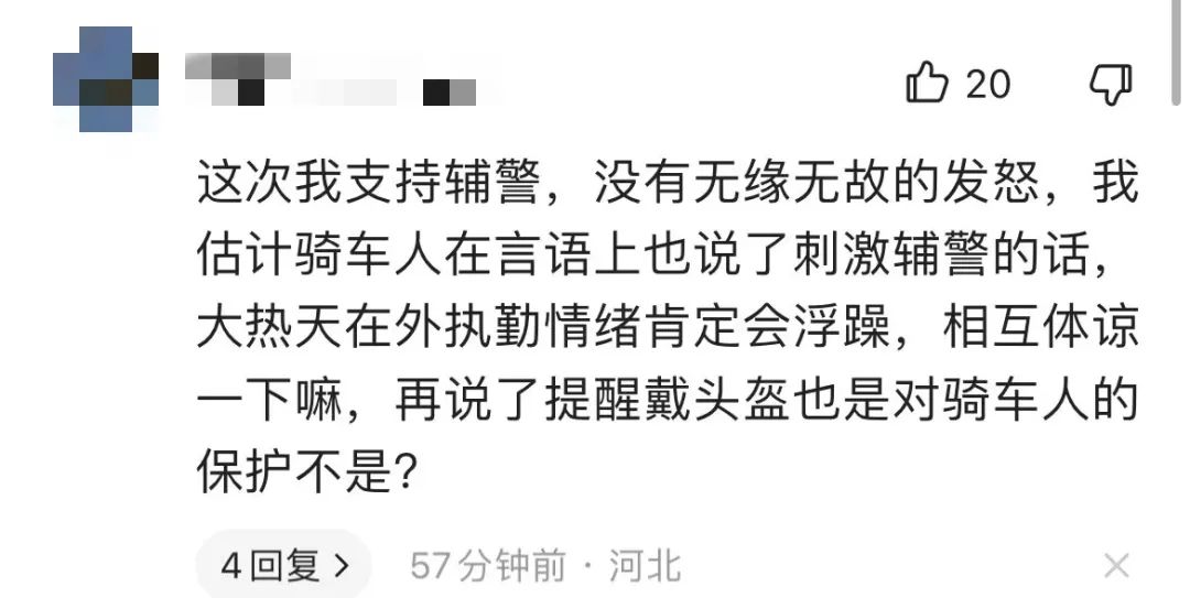 从交警大队的官方通报中可以看出,贺某某的确是未戴头盔在先、拒不配合在后,不光个人骑行存在安全隐患,还扰乱了交通执法秩序。但此事之所以引发舆论关注,不是应该不应该执法,而是面对违规且不配合的骑行者,交通执法者能不能暴跳如雷、出言不逊?