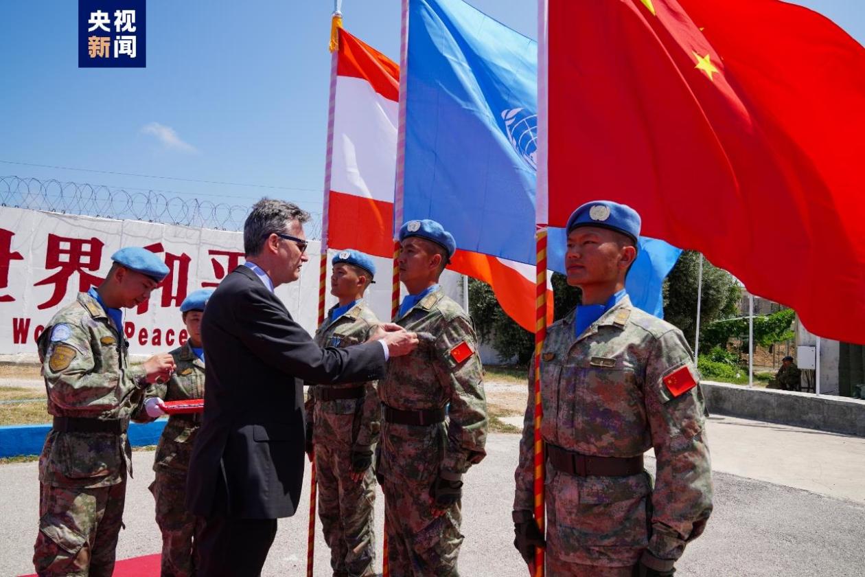 当地时间7月4日,中国第21批赴黎巴嫩维和部队410名官兵被联合国驻黎巴嫩临时部队(联黎部队)授予联合国“和平勋章”,以表彰他们在任务期内为南黎地区的和平稳定作出的突出贡献。联黎部队司令拉萨罗、中国驻黎巴嫩大使钱敏坚、黎巴嫩政府军代表、联黎部队各部门主管、各出兵国维和人员等300余名嘉宾出席了仪式。
