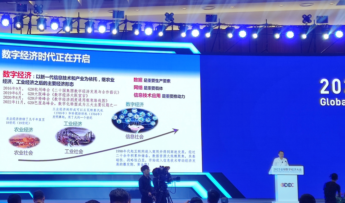 7月5日上午,2023全球数字经济大会主论坛在国家会议中心举行。数字经济时代正在开启,世界各国都在积极推进数字化转型。推动数字化转型,发展数字经济也成为我国的战略选择。论坛现场,中国科学院院士梅宏在主旨报告中表示,数据要素市场、数据治理体系和数据技术体系构成了数字经济发展的三大基石。